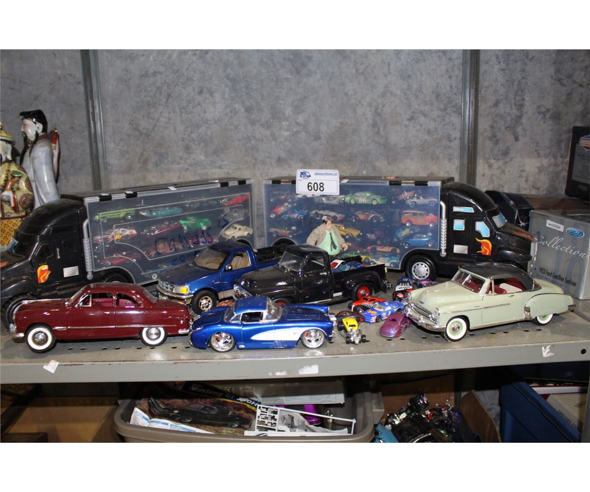 SHELF LOT OF ASSORTED DIECAST METAL COLLECTORS CARS