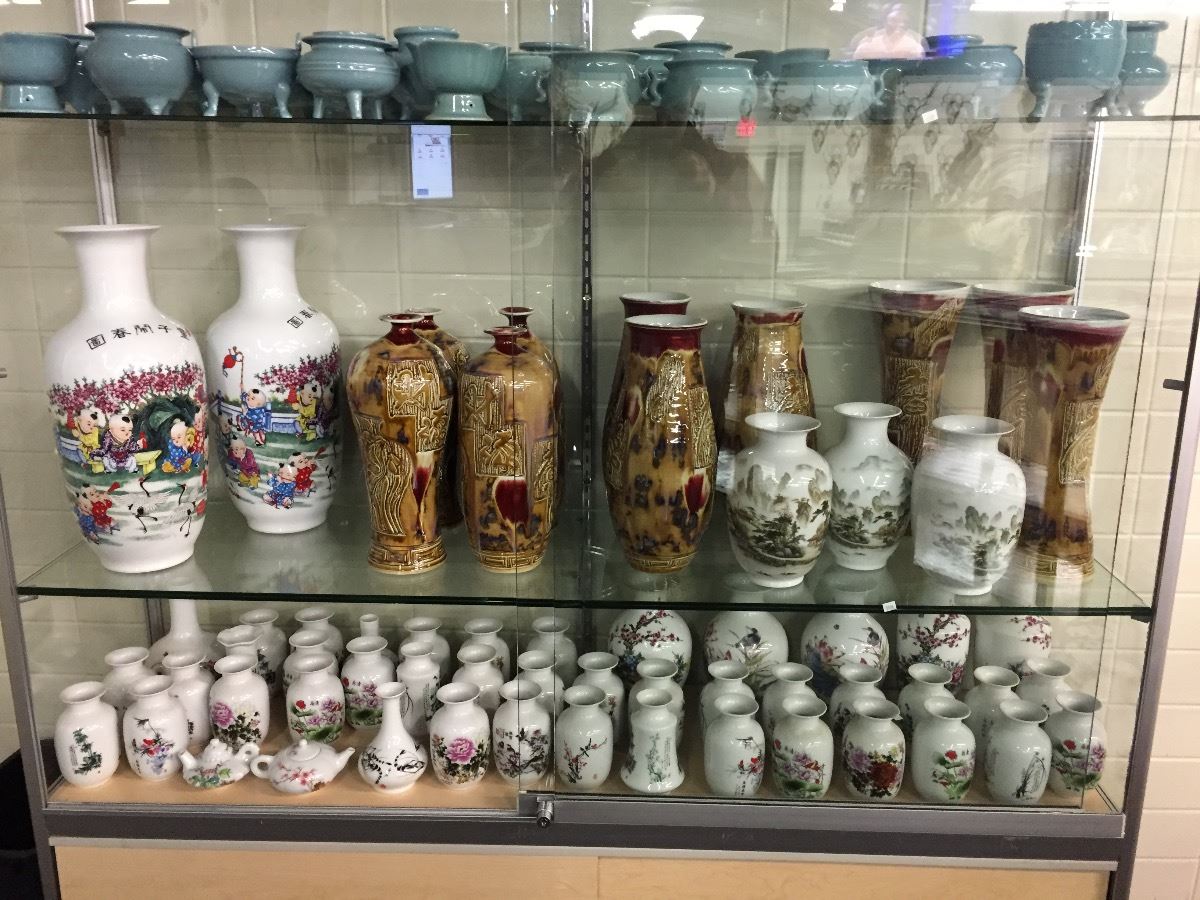 SHELF LOT OF ASSORTED DYNASTY MARKS ETC., CHINESE DECORATED EXPORT VASES
