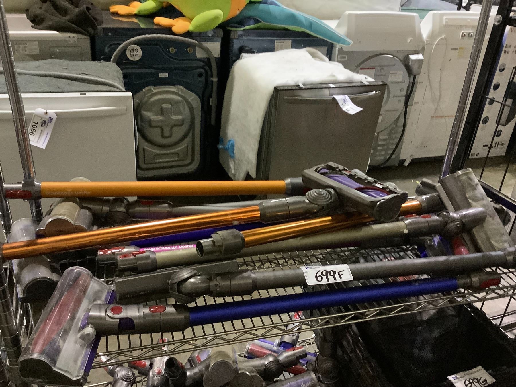 SHELF LOT OF ASSORTED DYSON VACUUM PRODUCTS FOR PARTS AND REPAIR