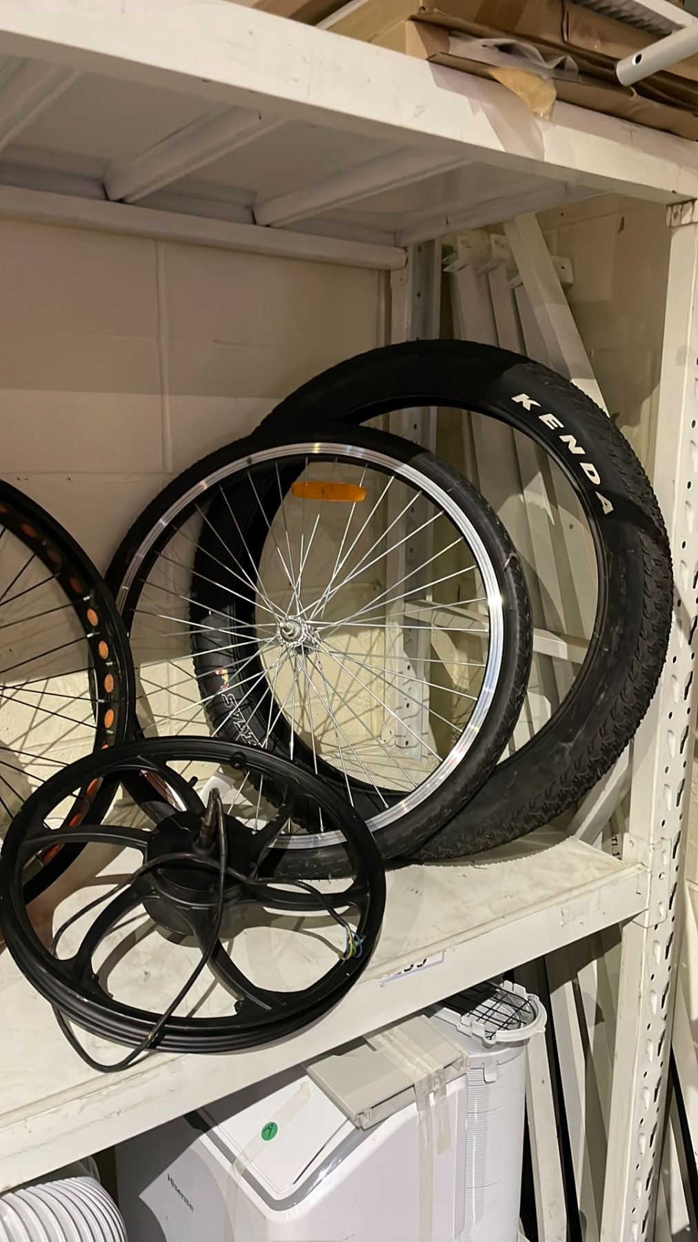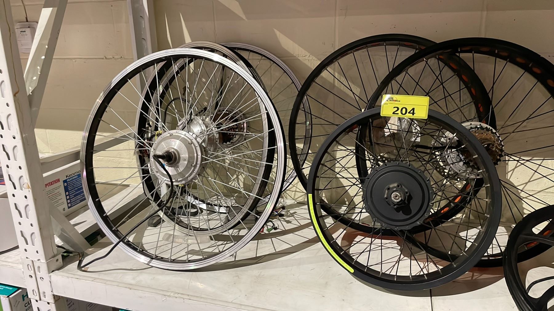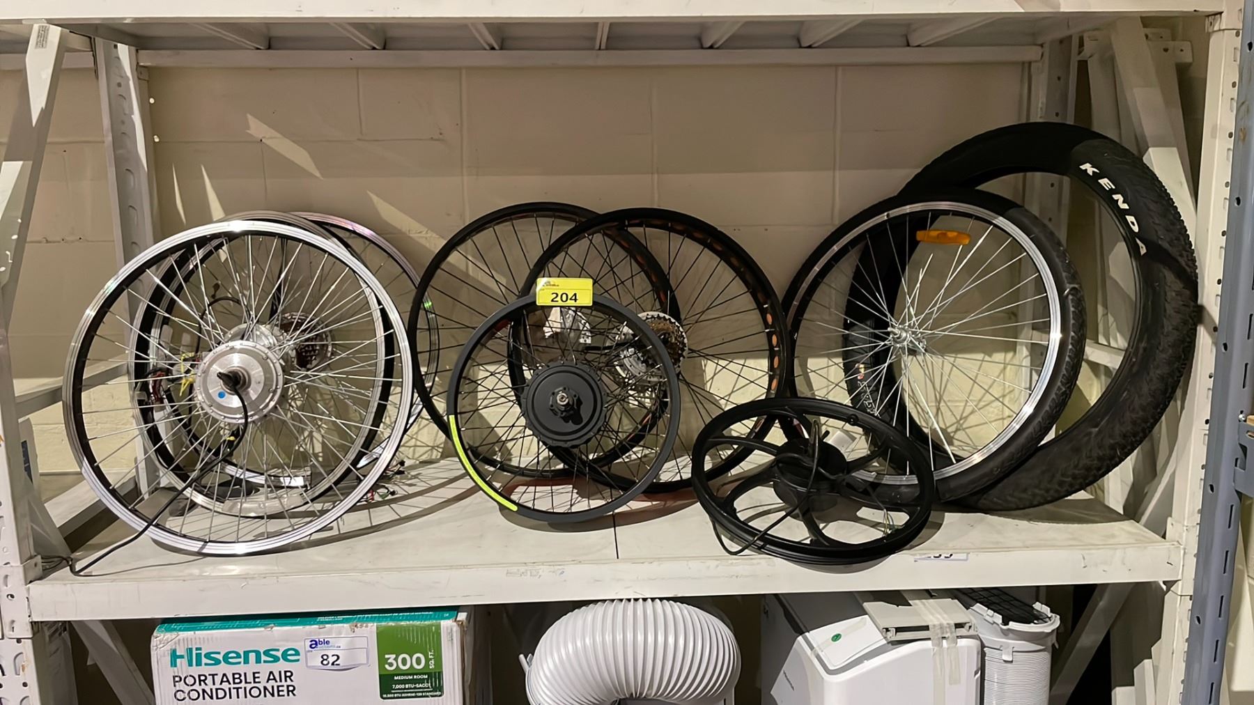 SHELF LOT OF ASSORTED E-BIKE WHEELS