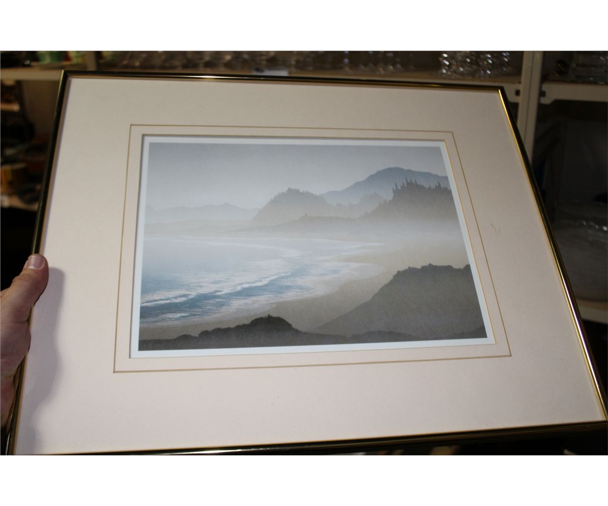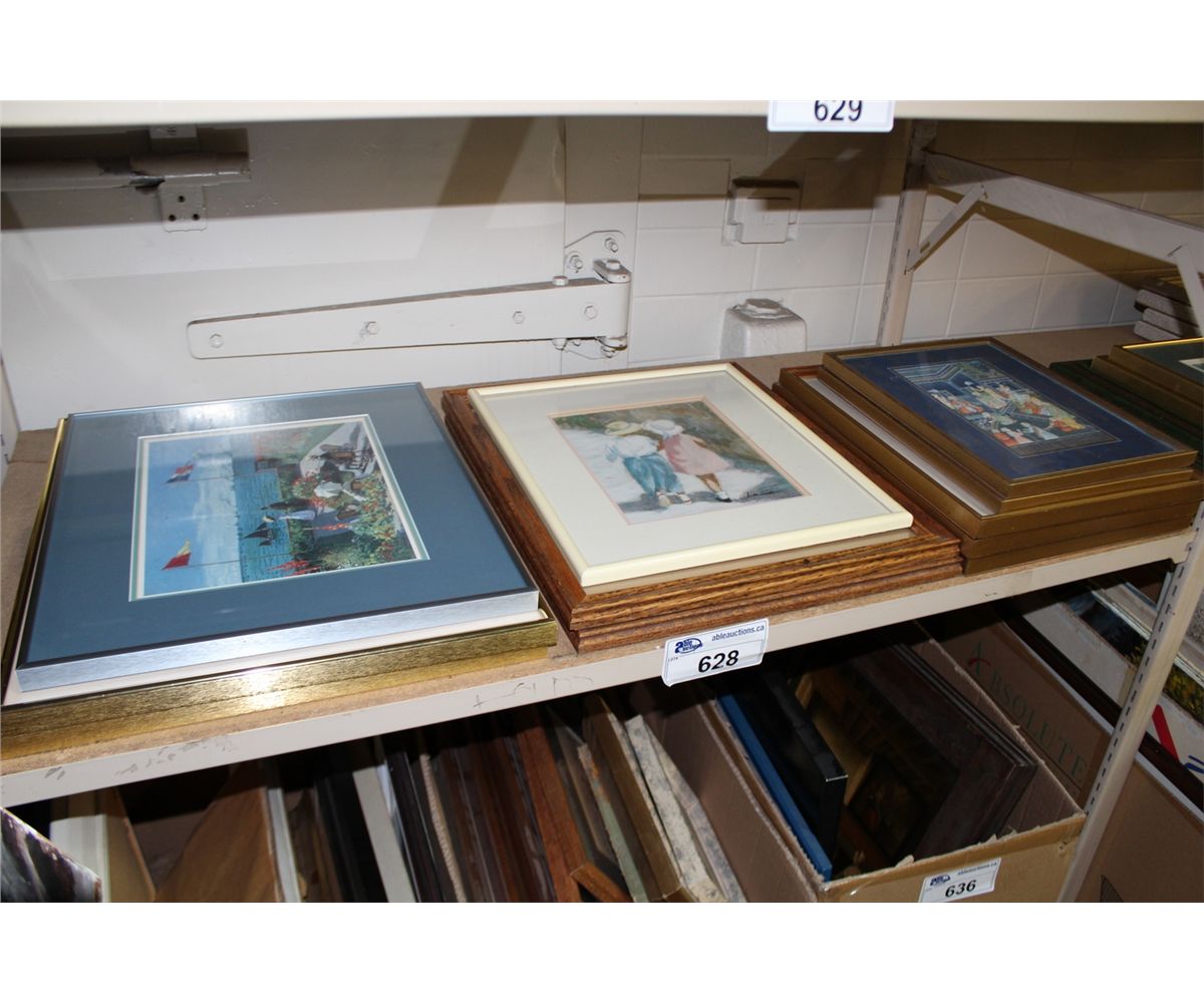 SHELF LOT OF ASSORTED FRAMED PRINTS ALL NET PROCEEDS FROM THE SALE OF THIS ARTWORK WILL BE DONATED TO THE SQUAMISH FOOD BANK