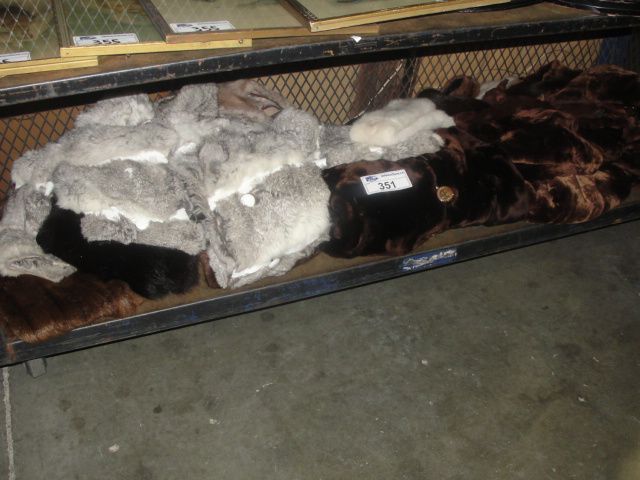 SHELF LOT OF ASSORTED FUR COATS, SHAWLS, AND MISC FUR ITEMS