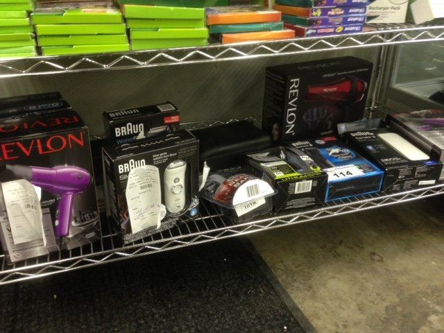 SHELF LOT OF ASSORTED HAIR DRYERS, SHAVERS, ETC
