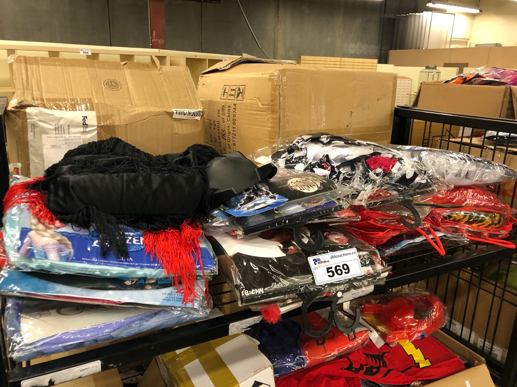 SHELF LOT OF ASSORTED  HALLOWEEN DECORATIONS/COSTUMES