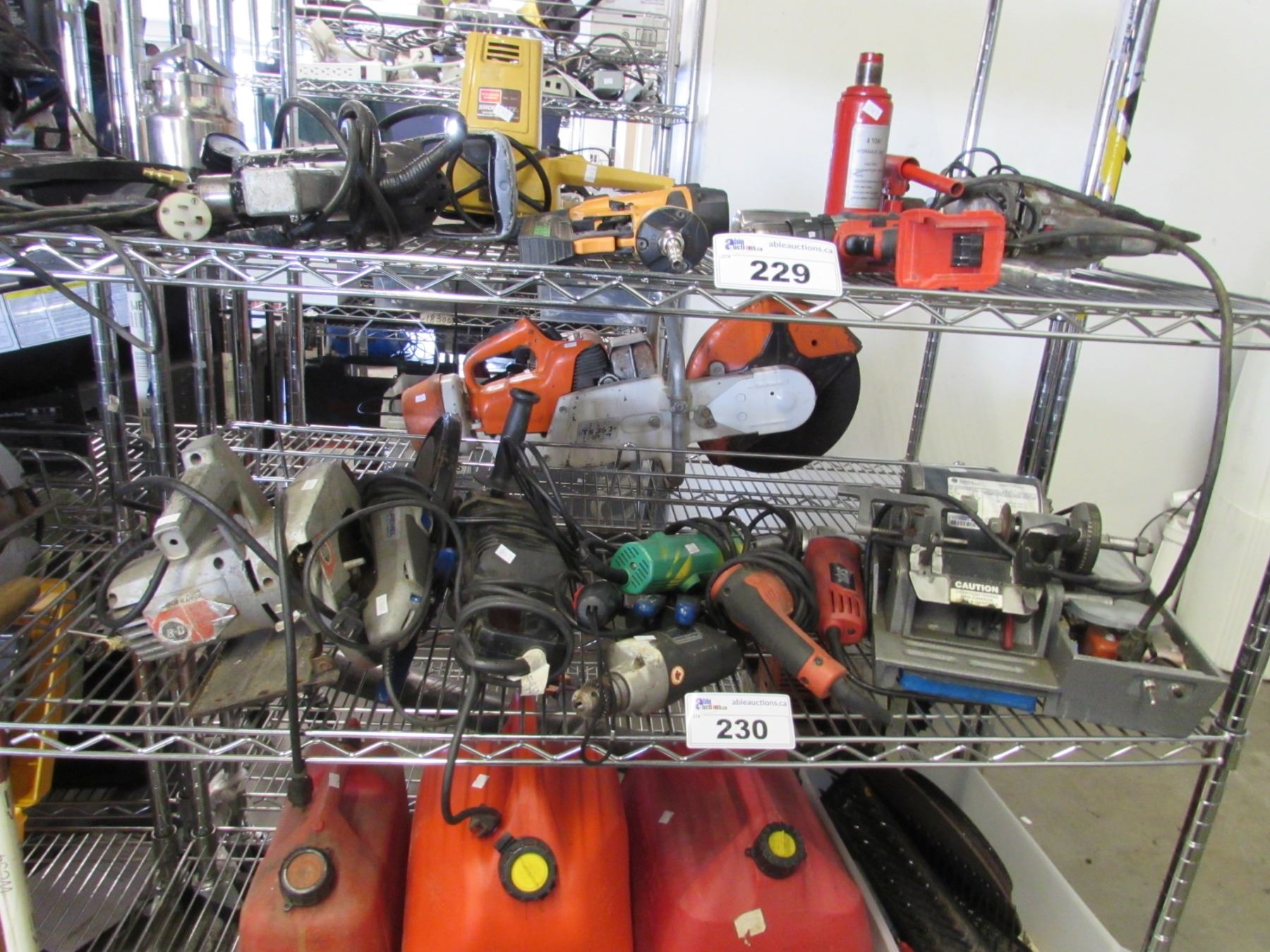 SHELF LOT OF ASSORTED HAND & POWER TOOLS