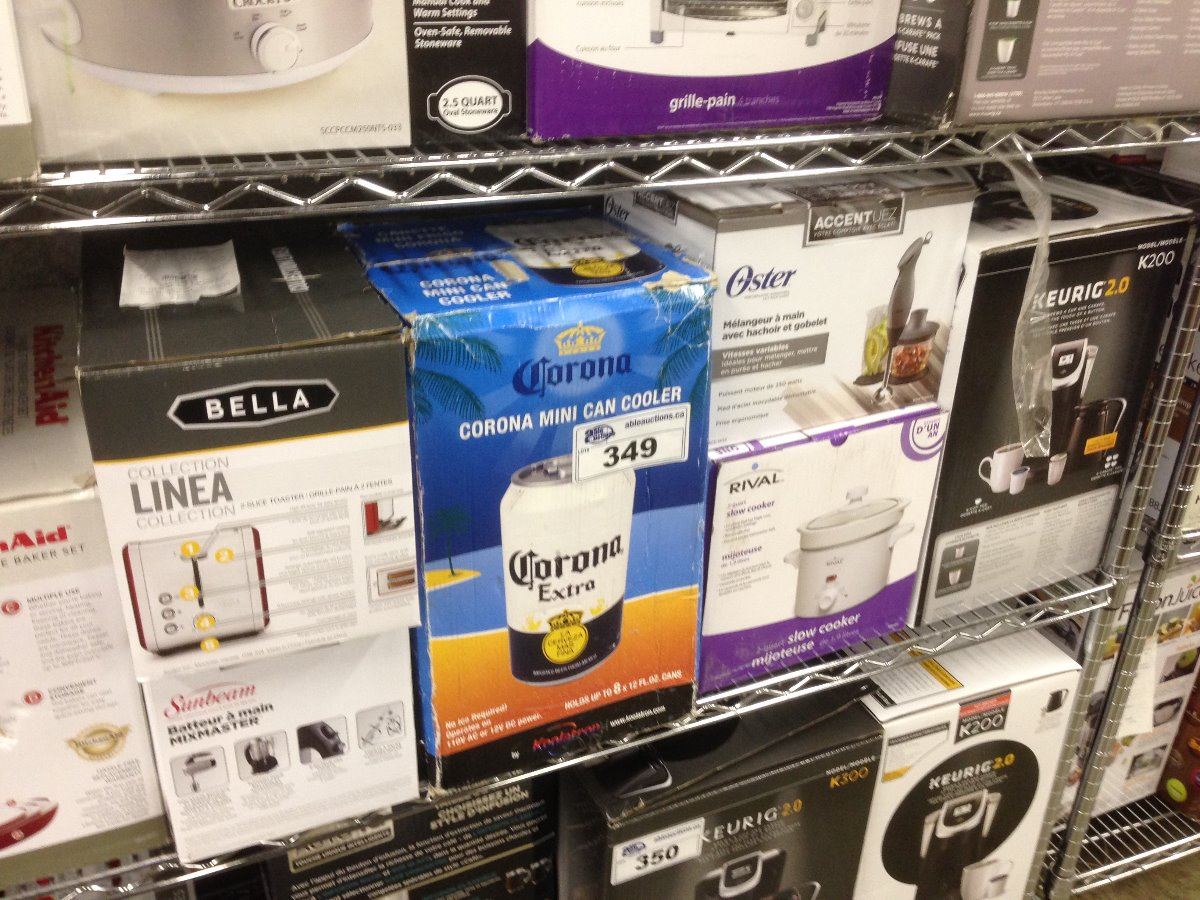 SHELF LOT OF ASSORTED HOUSEHOLD ITEMS INCLUDING MINI CAN COOLER,KEURIG, ETC.