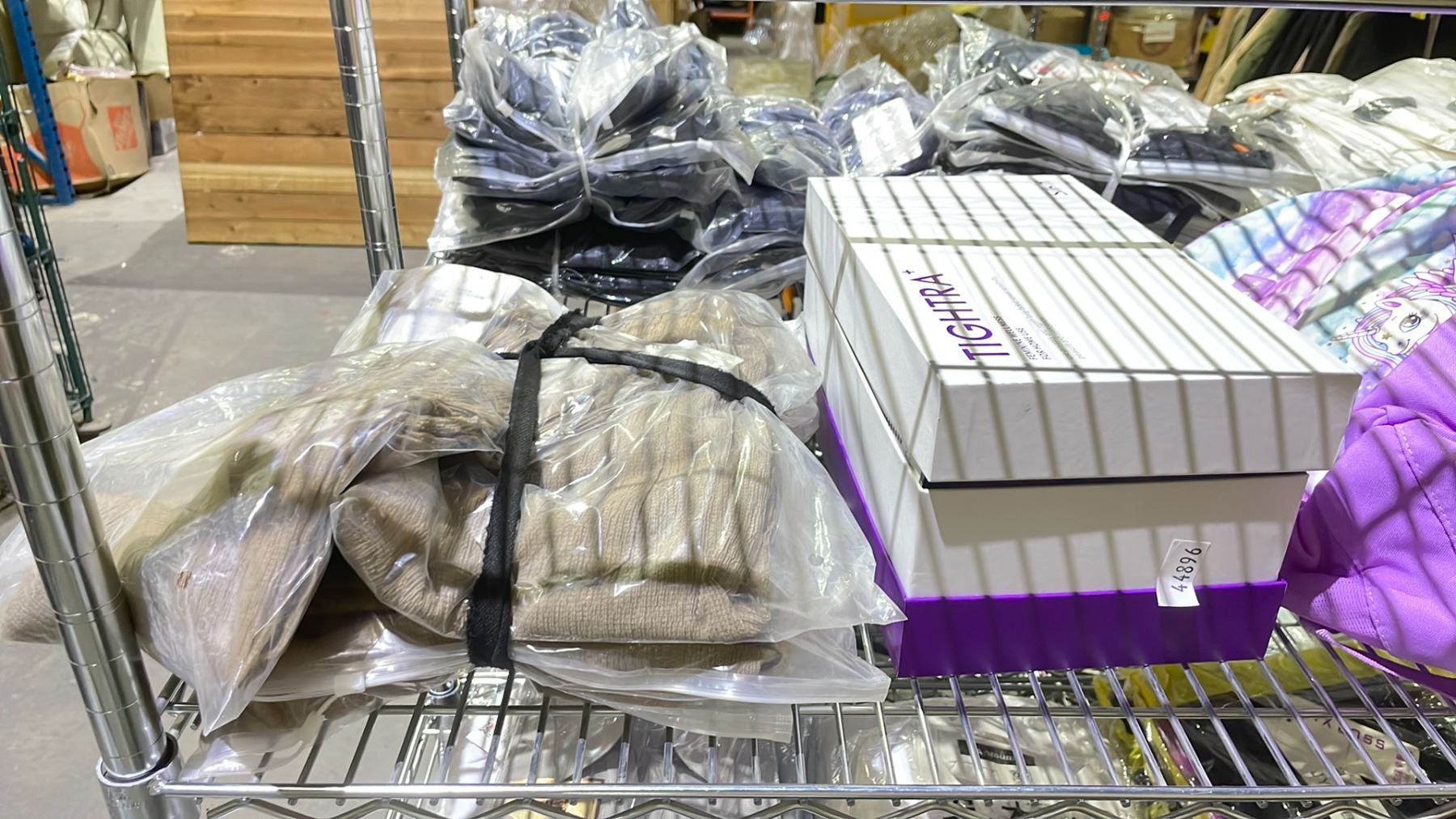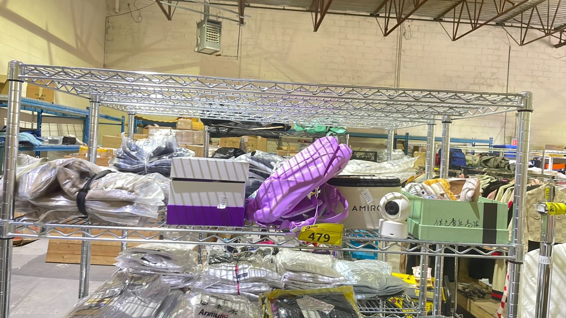 SHELF LOT OF ASSORTED ITEMS INCLUDING; KESSLORD HIGH HEELS, HOME SURVEILLANCE CAMERA, BACK PACK AND MORE