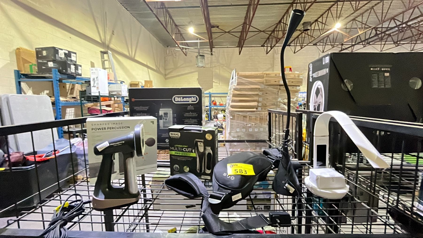 SHELF LOT OF ASSORTED ITEMS INCLUDING; SHARPER IMAGE POWER PERCUSSION MASSAGER, WAHL MULTI- CUT PRO SERIES AND MORE *UNKNOWN WORKING CONDITION/ MAY BE MISSING PIECES*