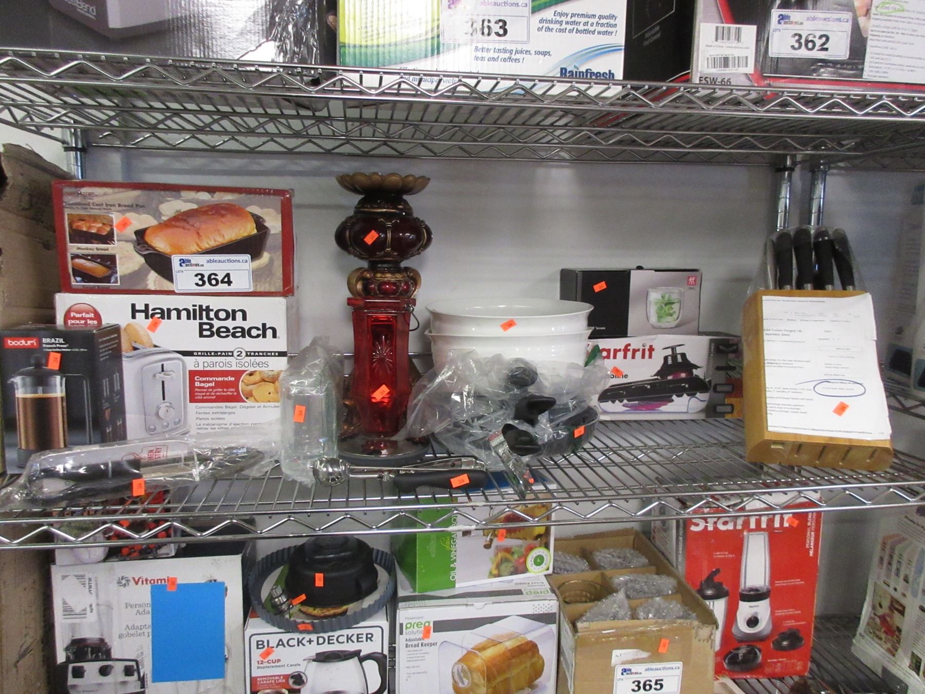 SHELF LOT OF ASSORTED KITCHEN ITEMS