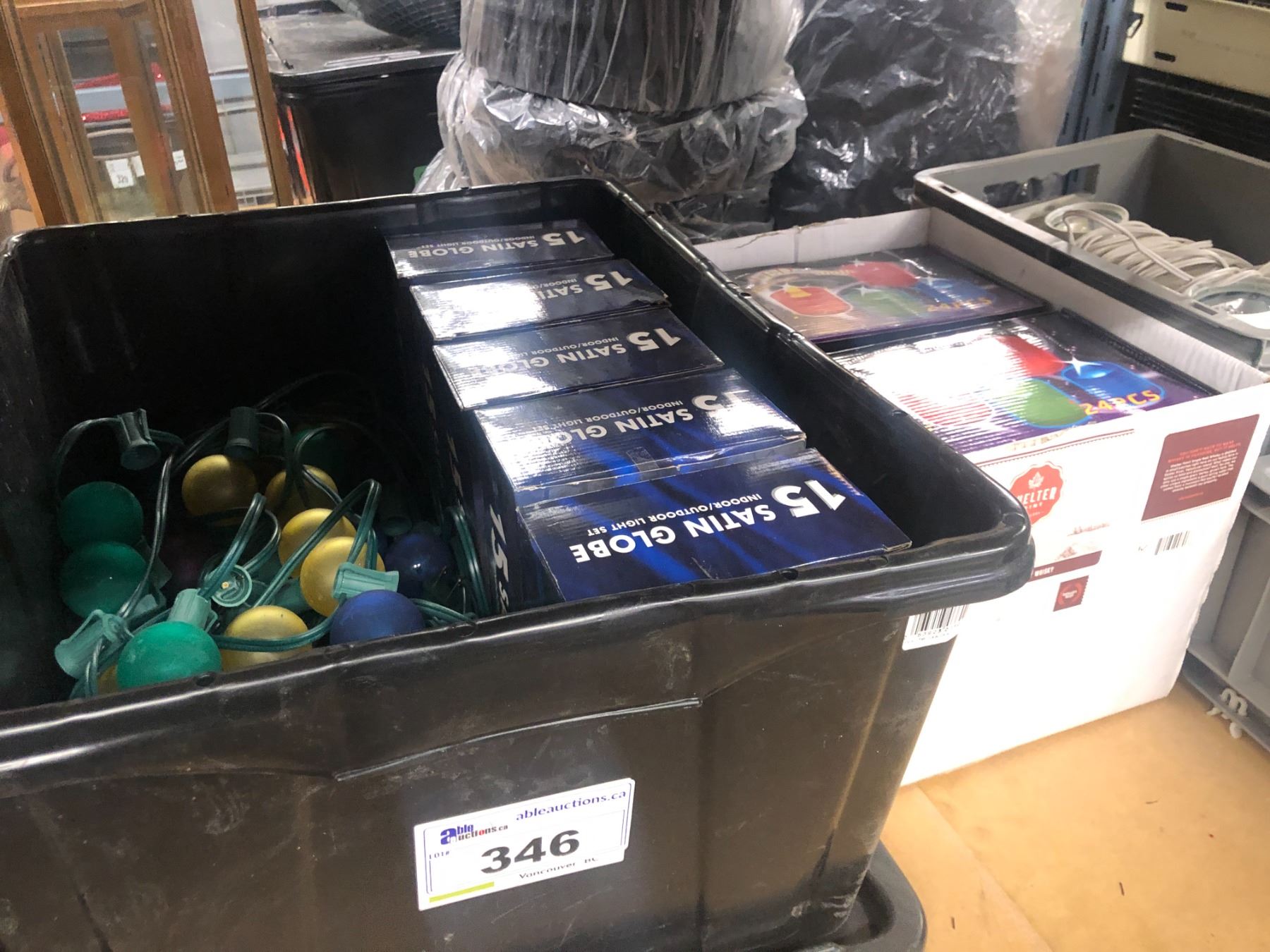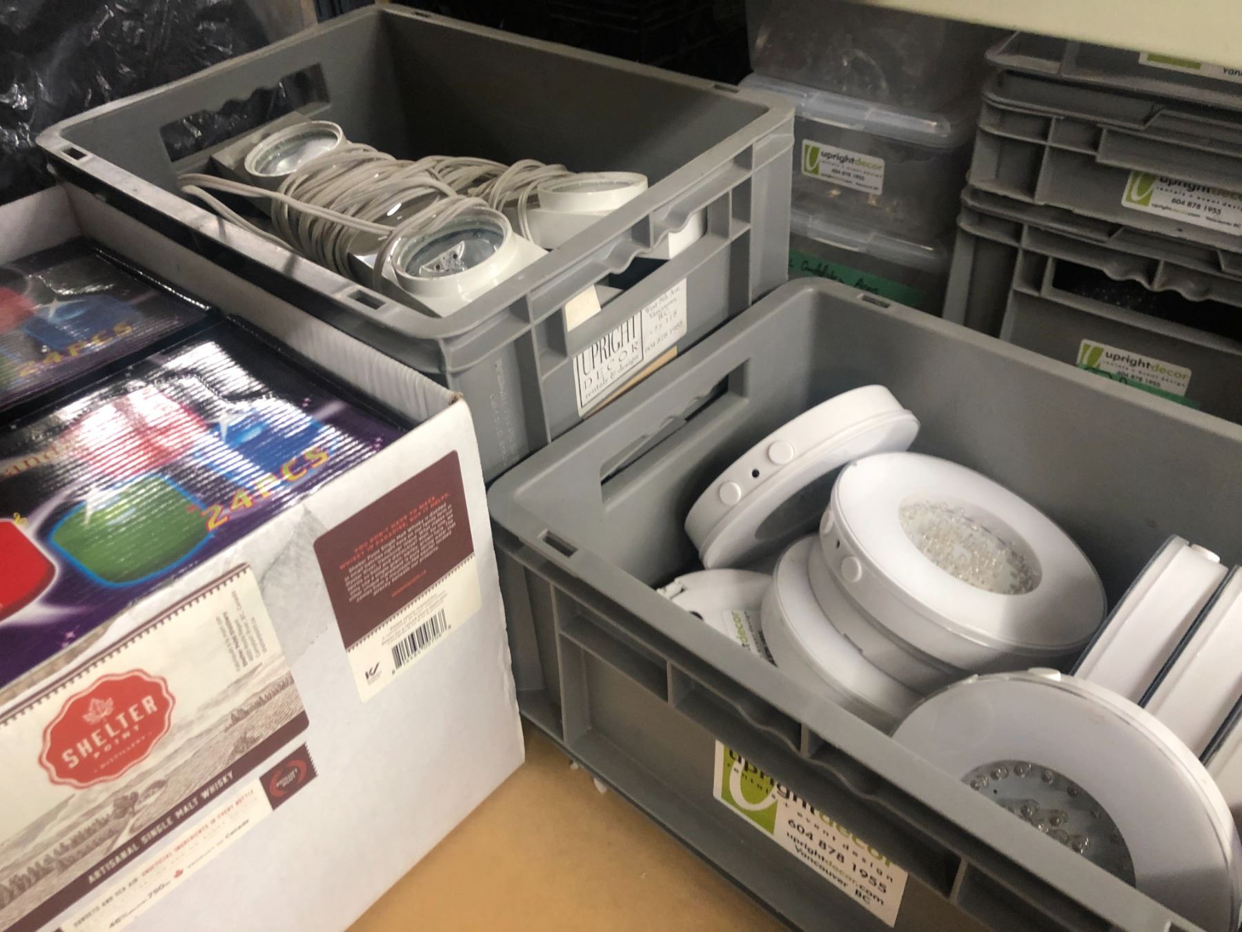 SHELF LOT OF ASSORTED LIGHT BULBS, LIGHTS AND MORE