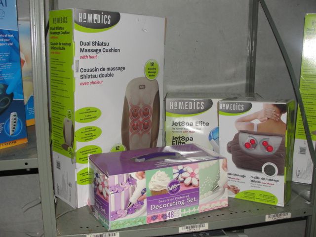 SHELF LOT OF ASSORTED MASSAGE CUSHIONS AND DECORATING SET
