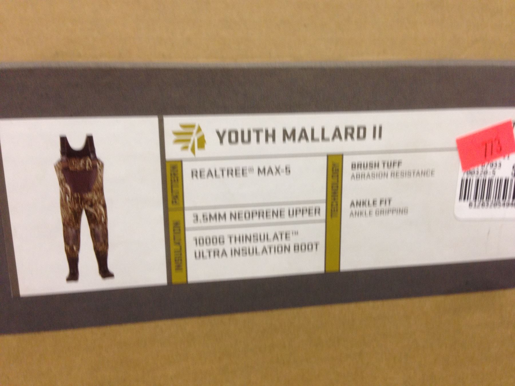 SHELF LOT OF ASSORTED OUTDOOR SPORTING GOODS STORE INVENTORY- TWO PAIRS LACROSSE YOUTH MALLARD II REALTREE MAX-5 CHEST WADERS