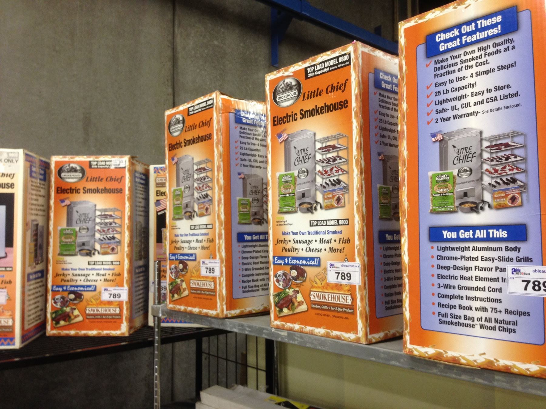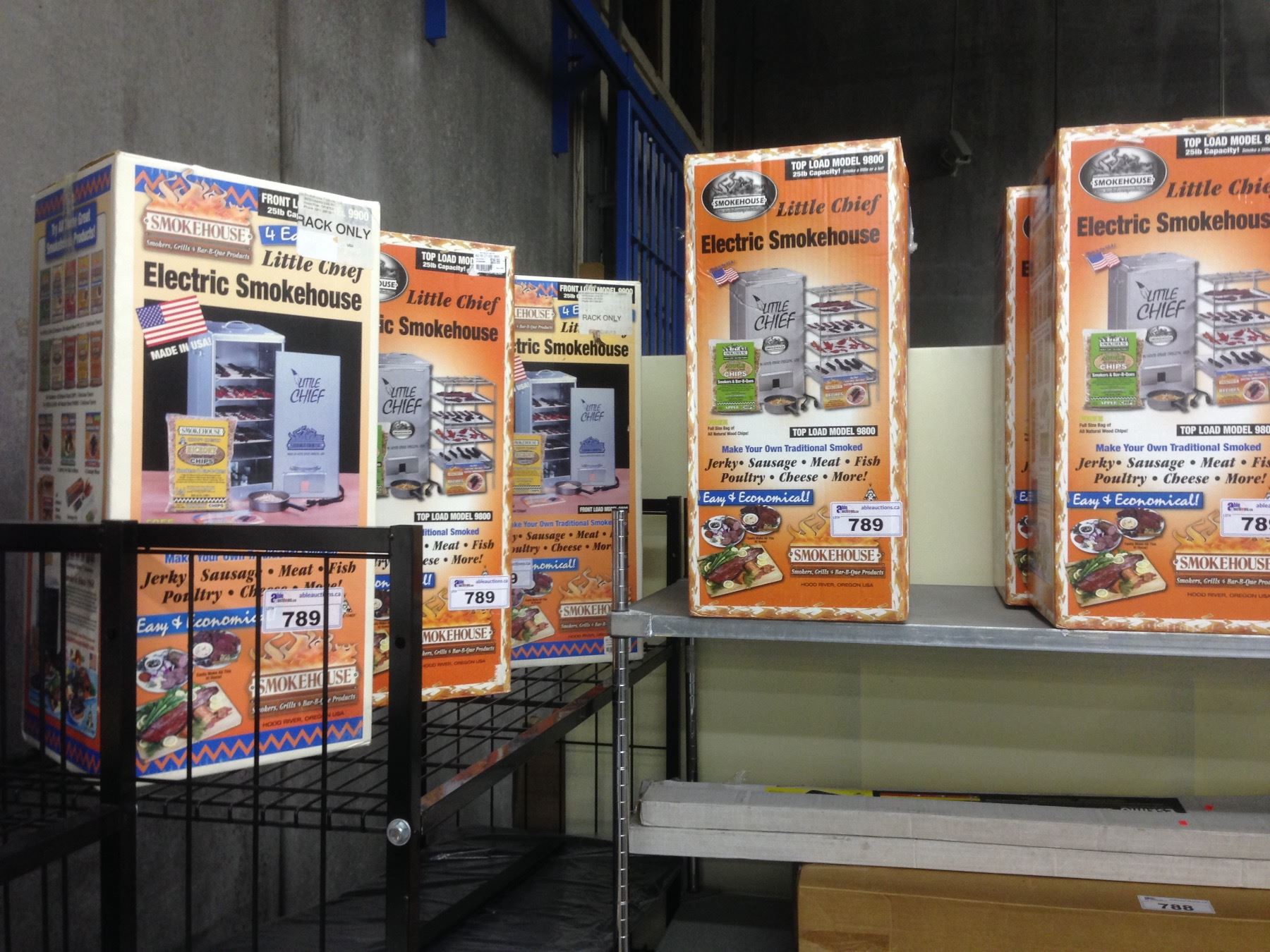 SHELF LOT OF ASSORTED OUTDOOR SPORTING GOODS STORE INVENTORY- 9 LITTLE CHIEF ELECTRIC SMOKEHOUSE KITS, SOME KITS CONTAIN PARTS ONLY, NOT FULL KIT