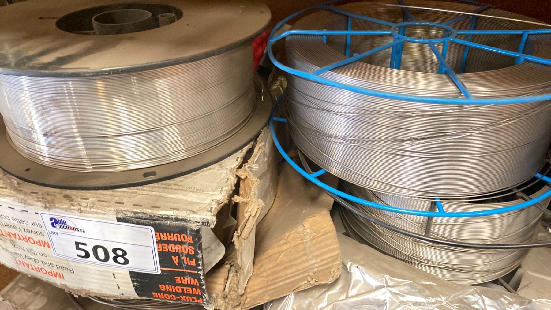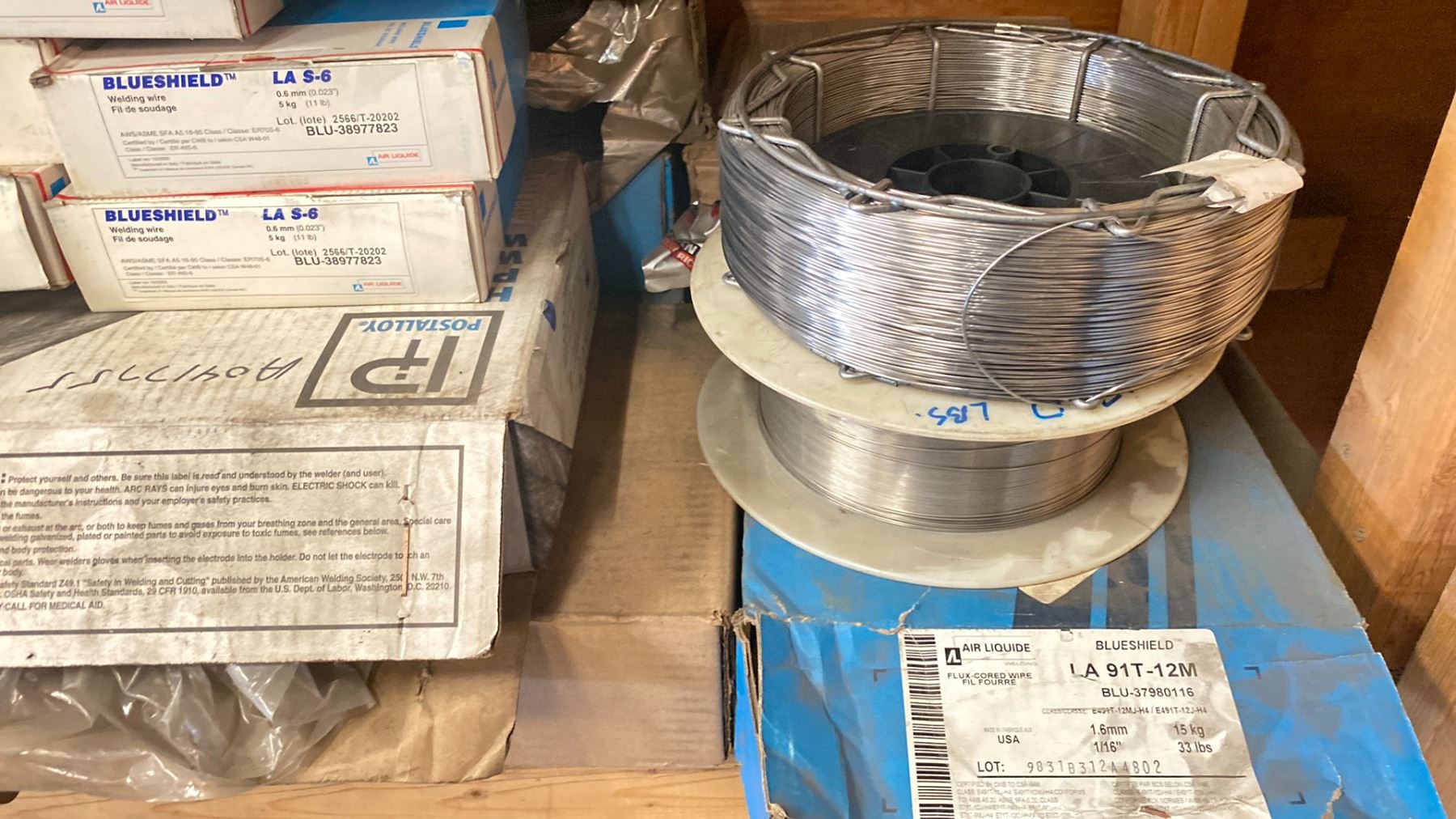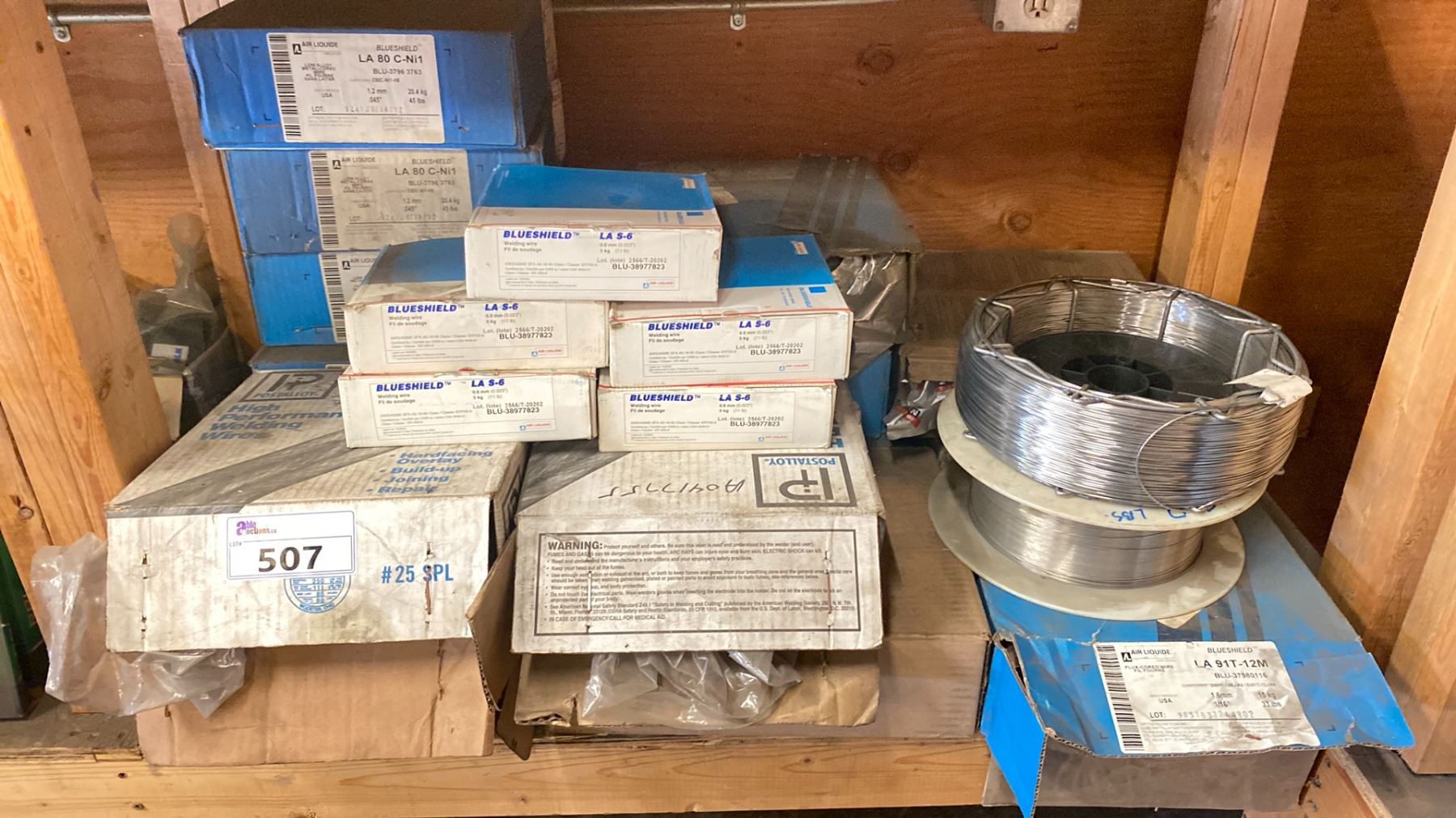 SHELF LOT OF ASSORTED SPOOLS OF WELDING WIRE