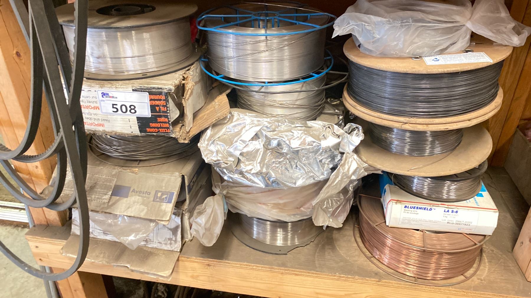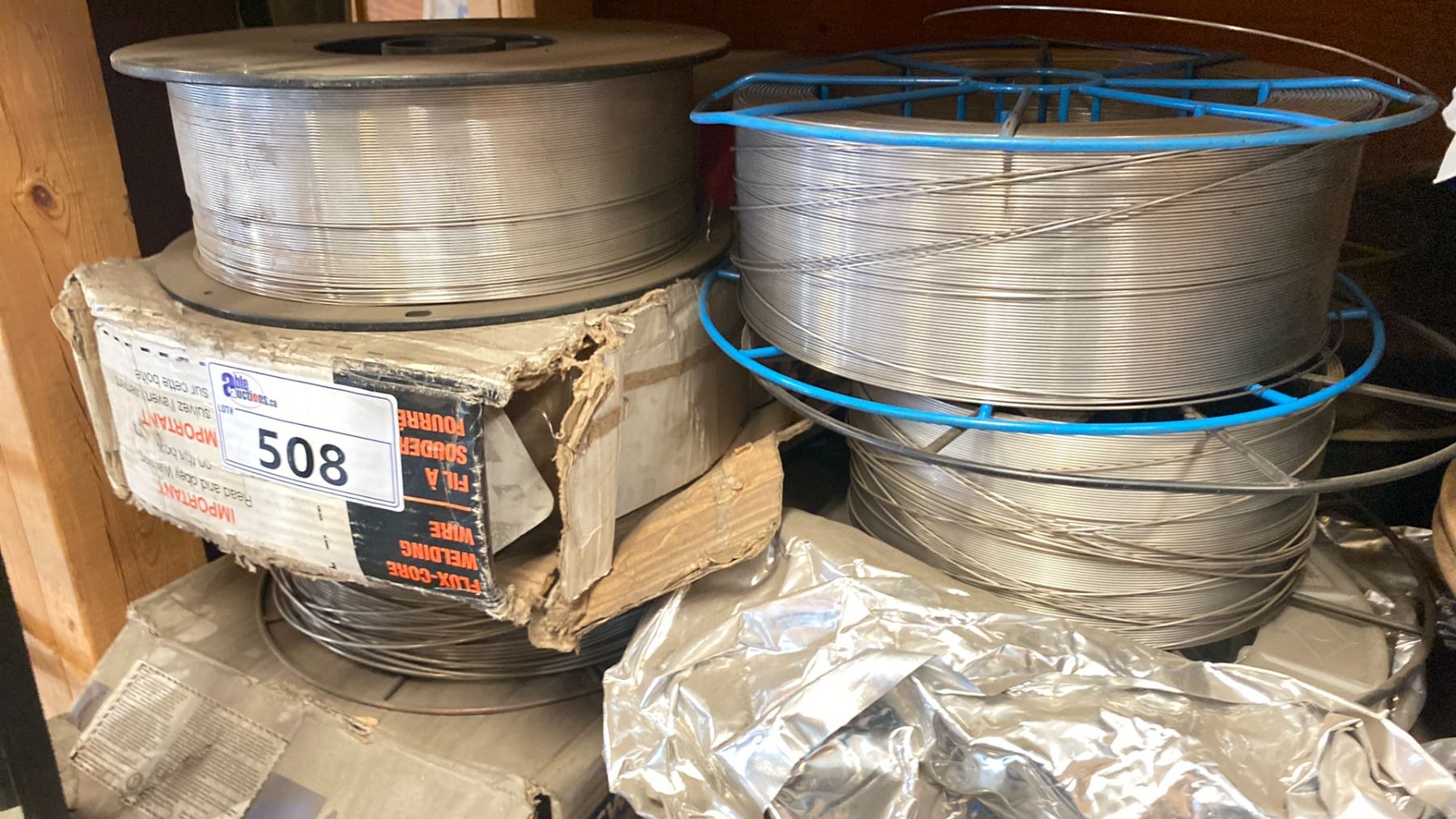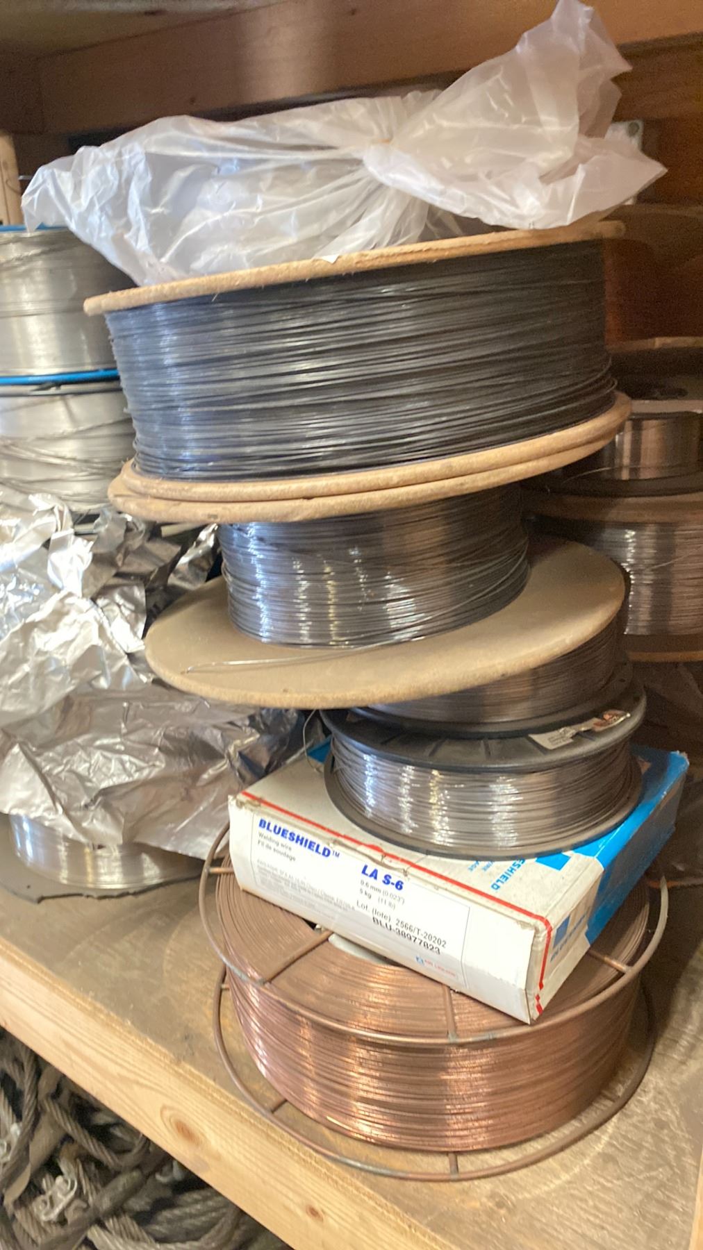 SHELF LOT OF ASSORTED SPOOLS OF WELDING WIRE