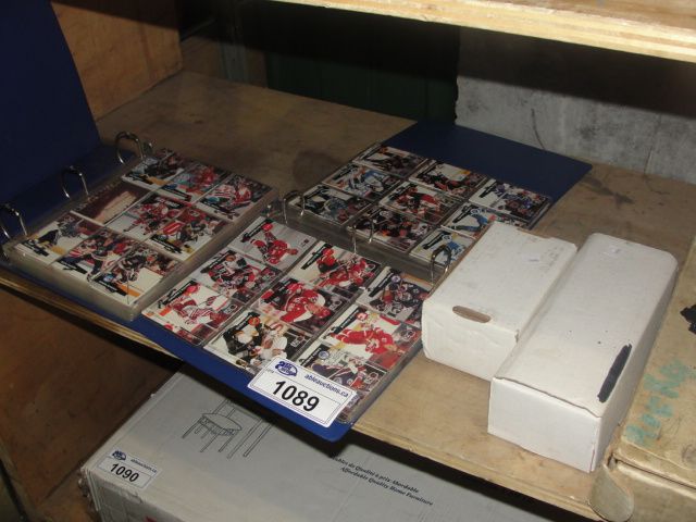 SHELF LOT OF ASSORTED SPORTS COLLECTORS TRADING CARDS - 2 ALBUMS AND 3 BOXES