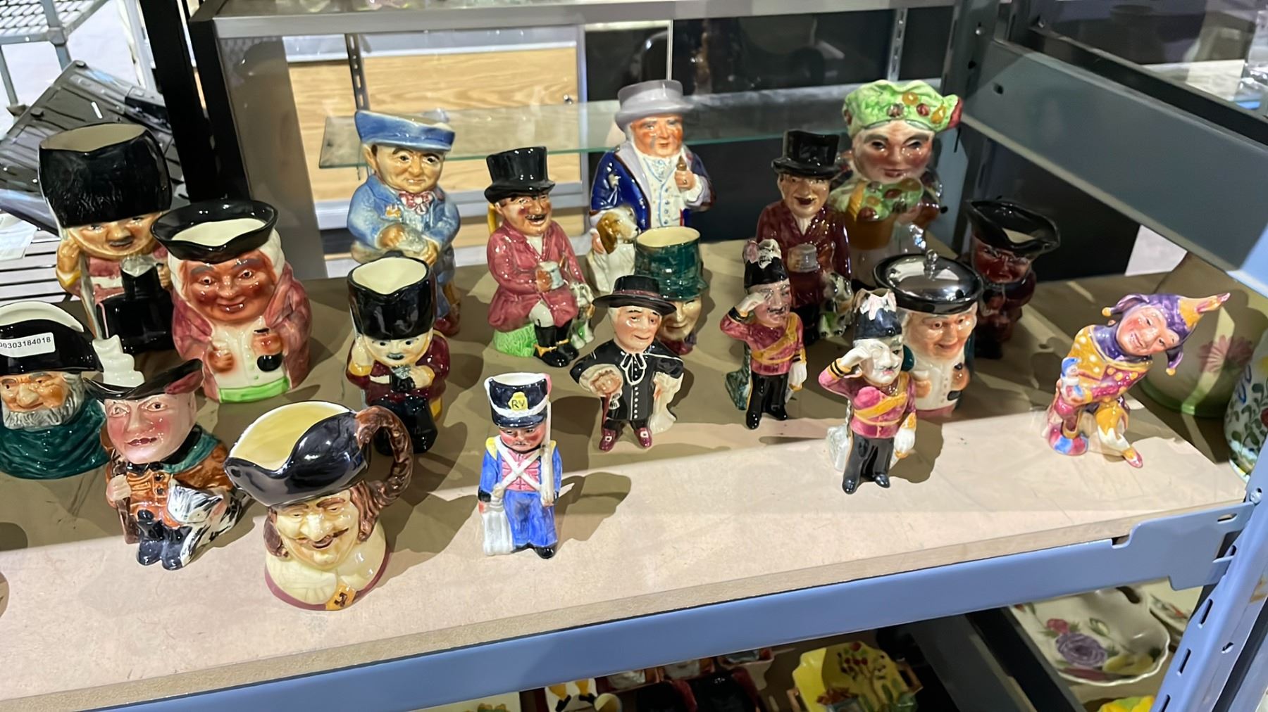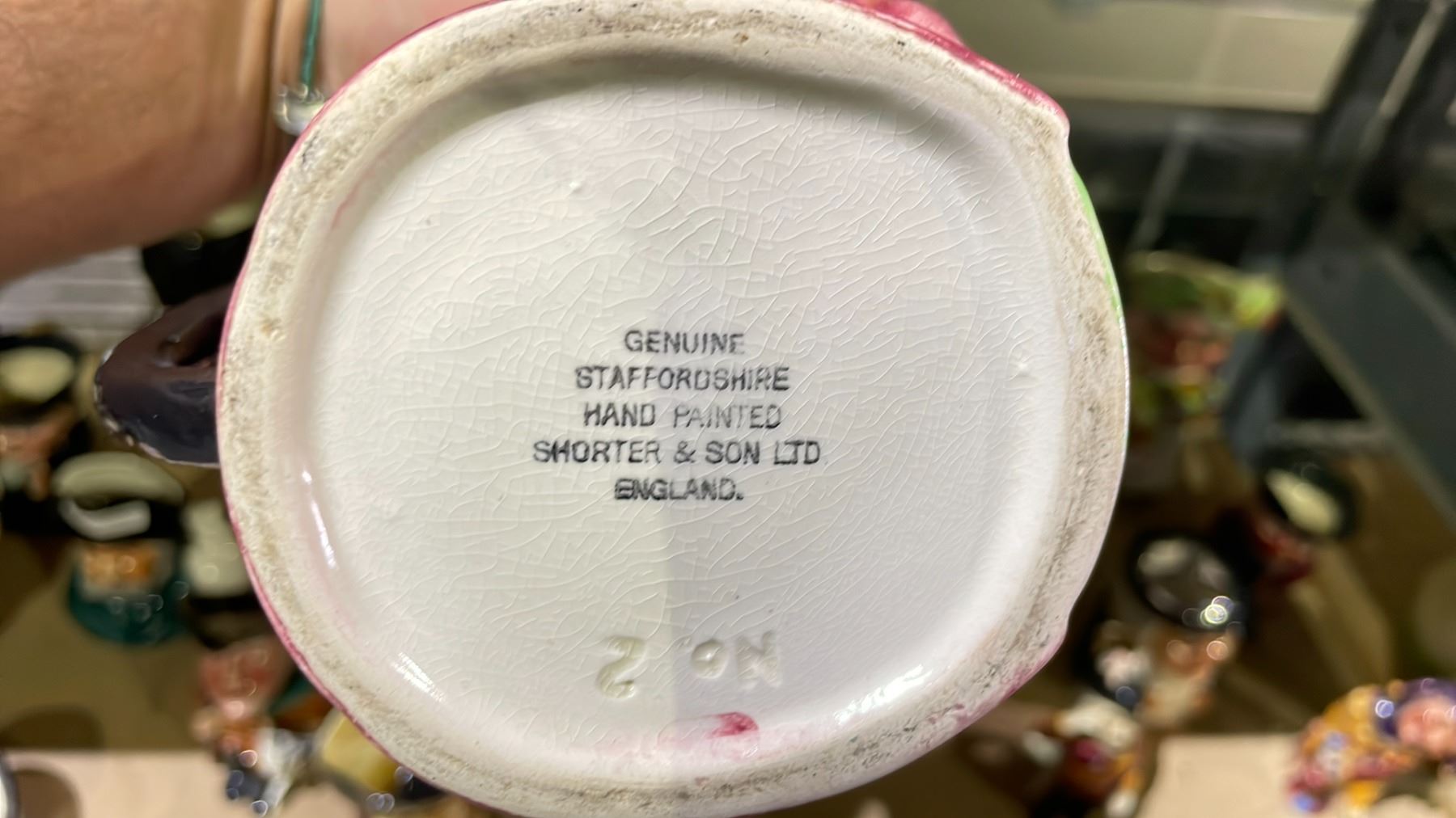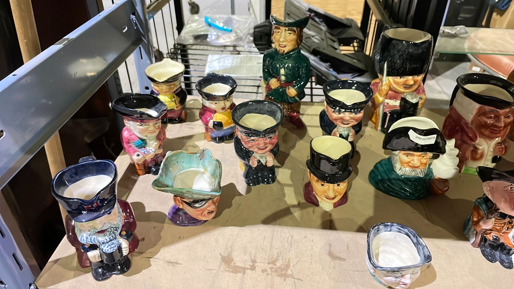 SHELF LOT OF ASSORTED STAFFORDSHIRE TOBY MUGS, AND MORE