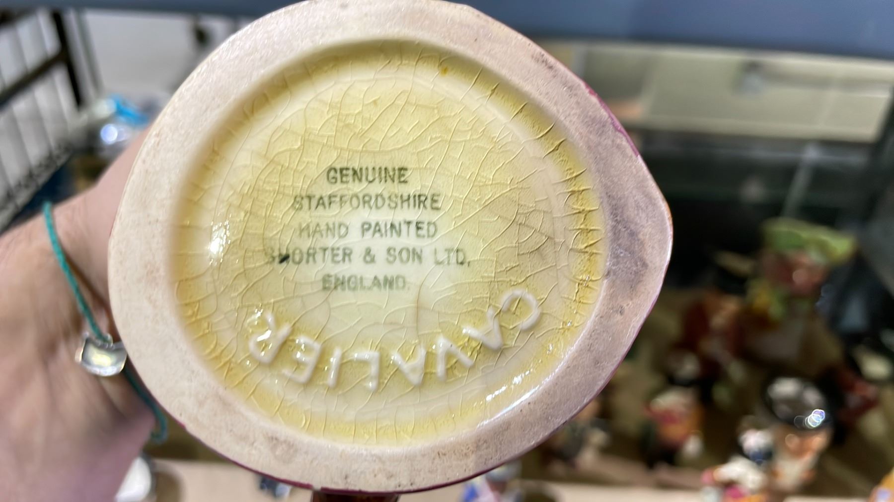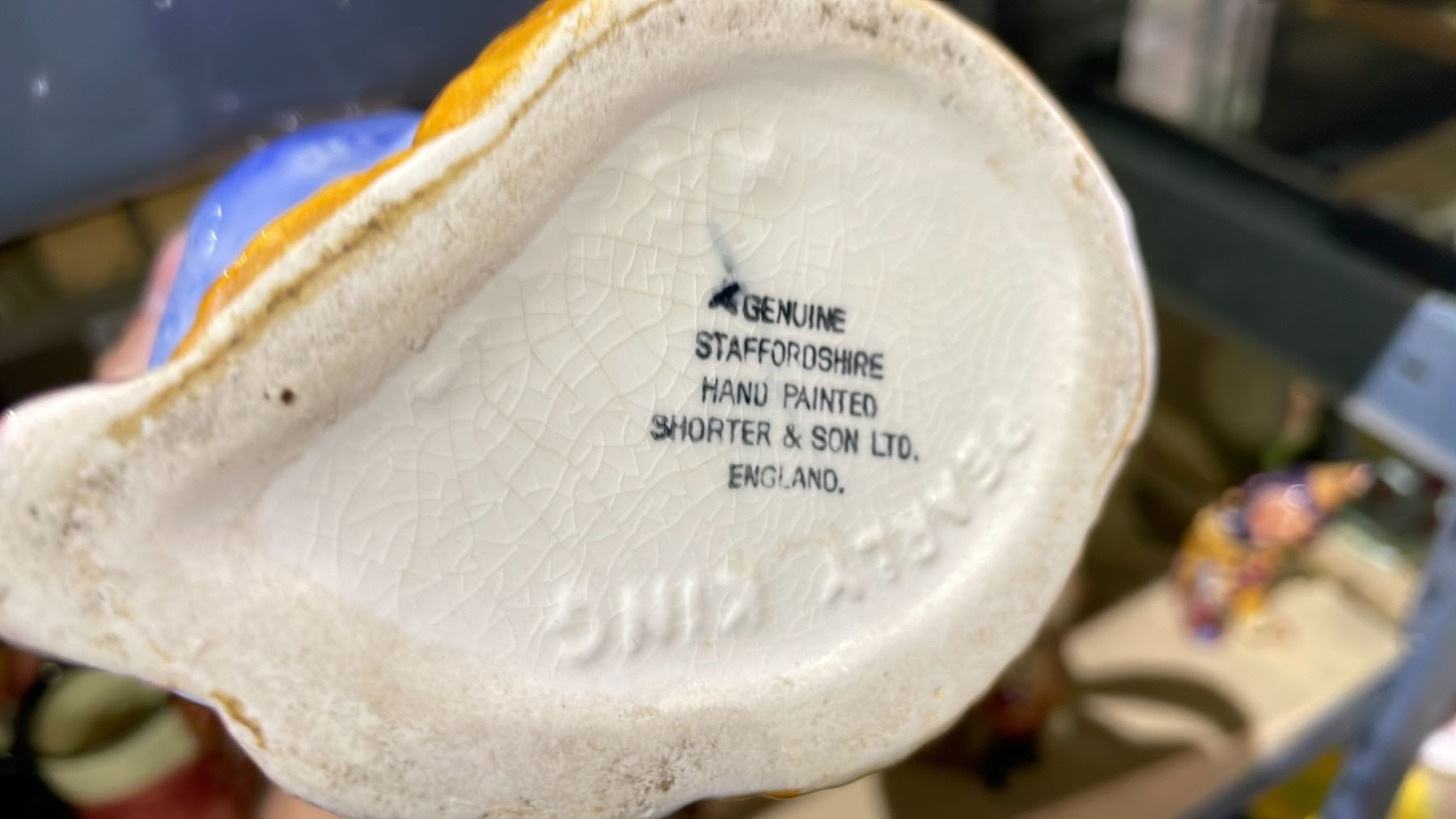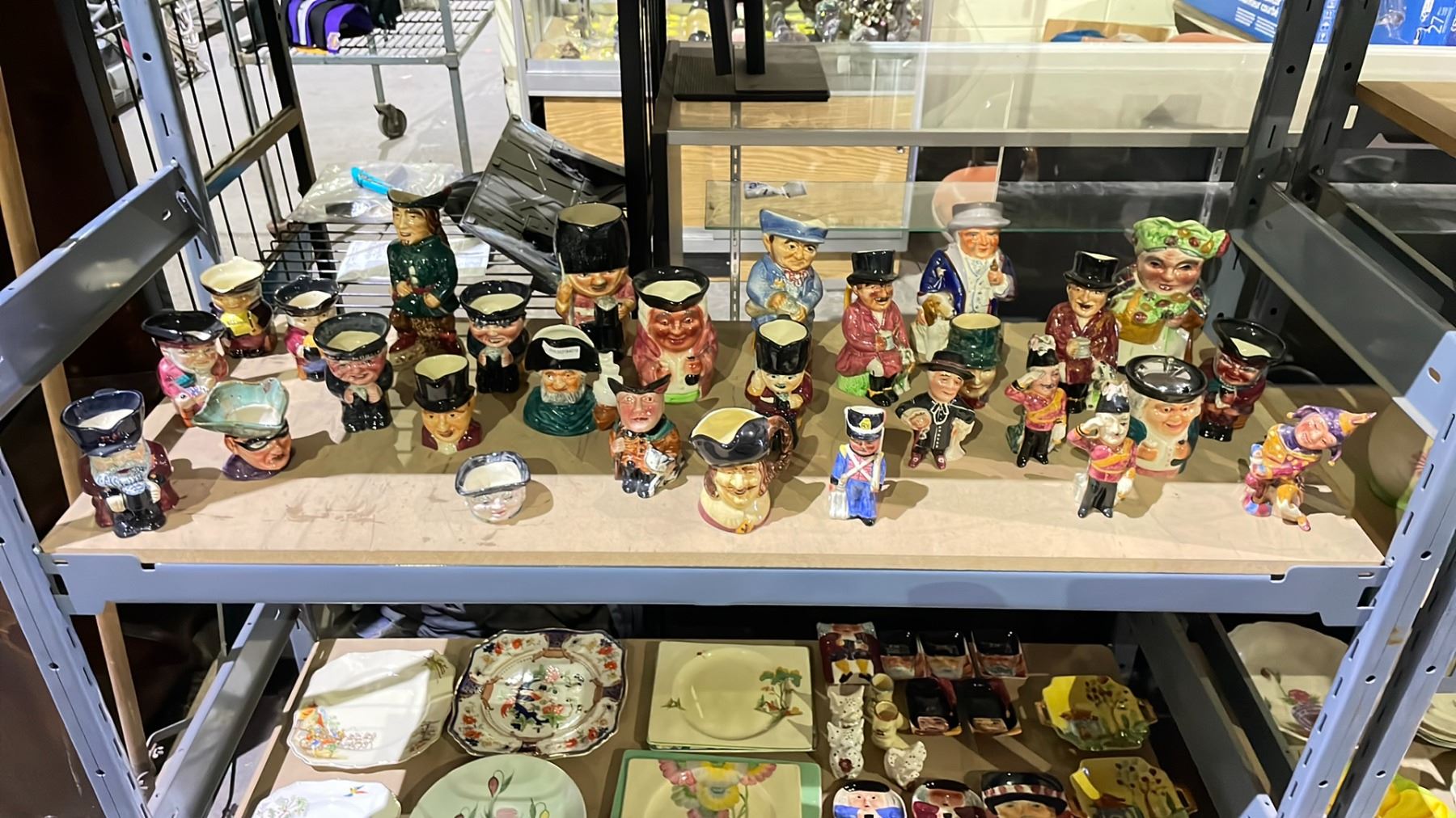 SHELF LOT OF ASSORTED STAFFORDSHIRE TOBY MUGS, AND MORE