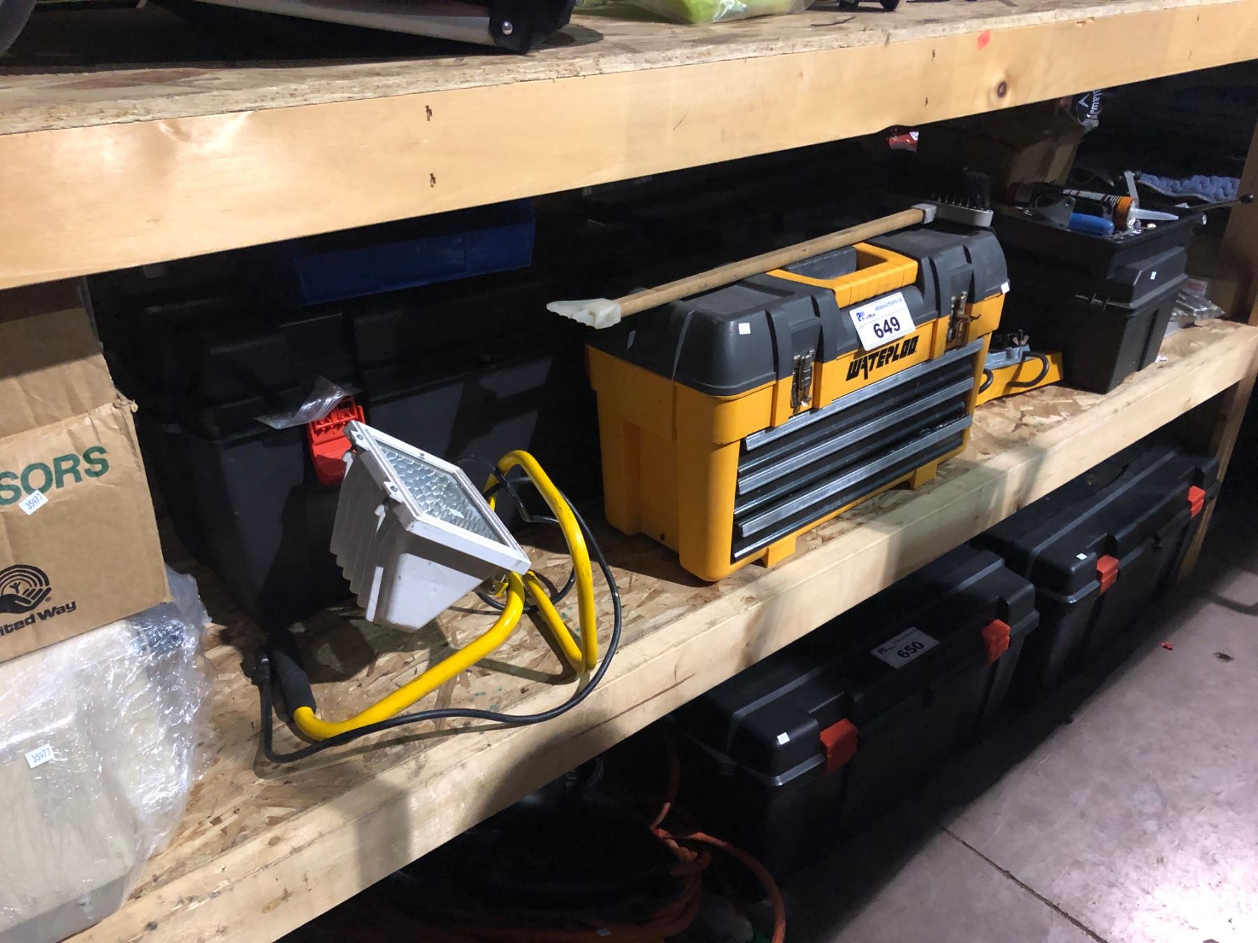 SHELF LOT OF ASSORTED TOOLS & MORE