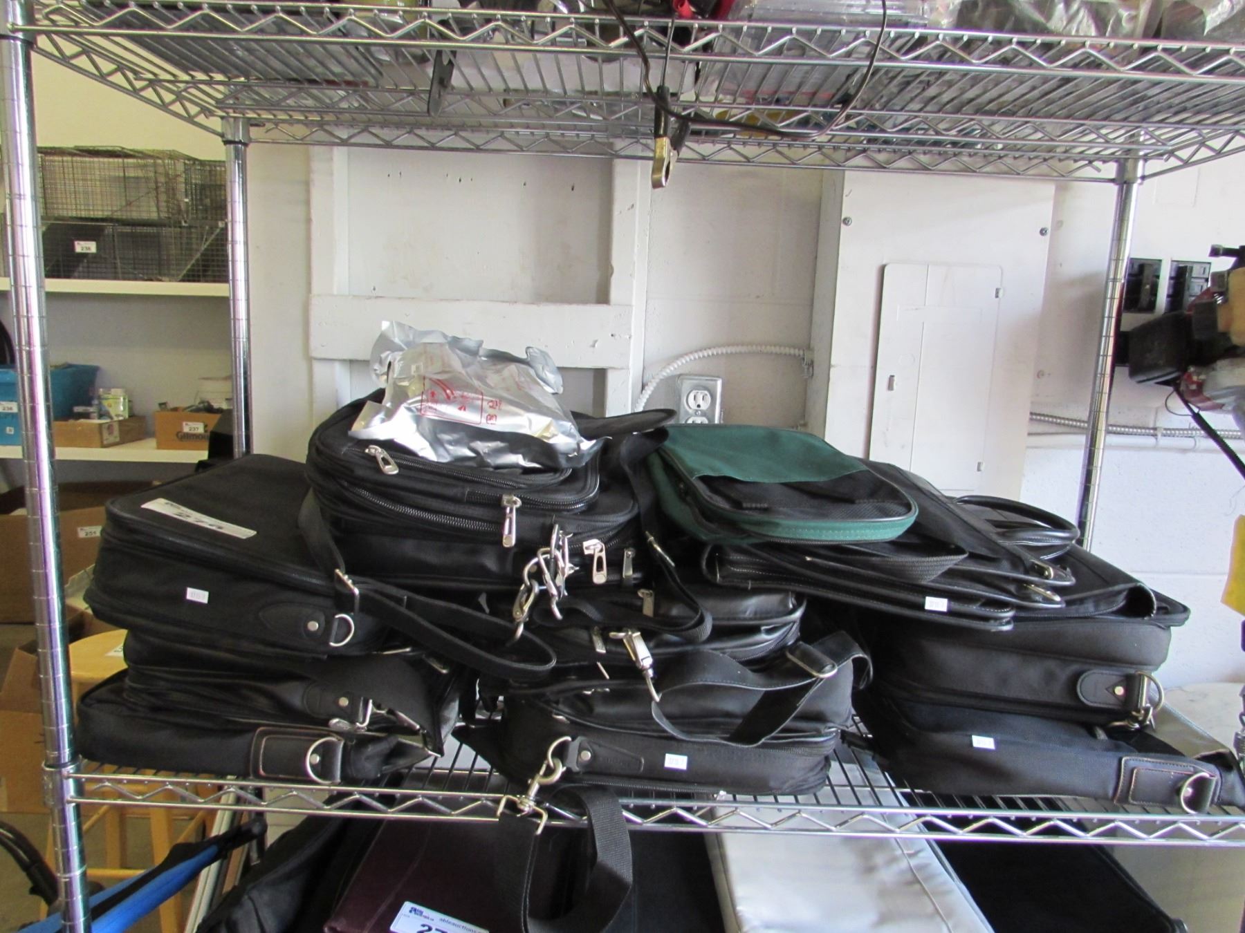 SHELF LOT OF ASSORTED TRAVEL/LAPTOP BAGS