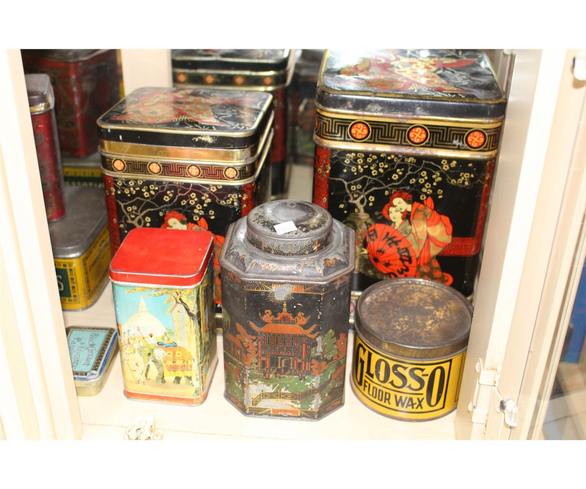 SHELF LOT OF ASSORTED VINTAGE COLLECTORS TINS