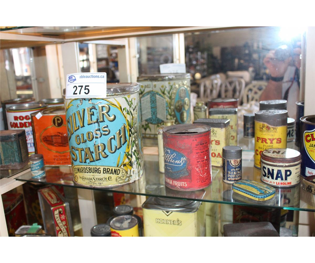 SHELF LOT OF ASSORTED VINTAGE COLLECTORS TINS