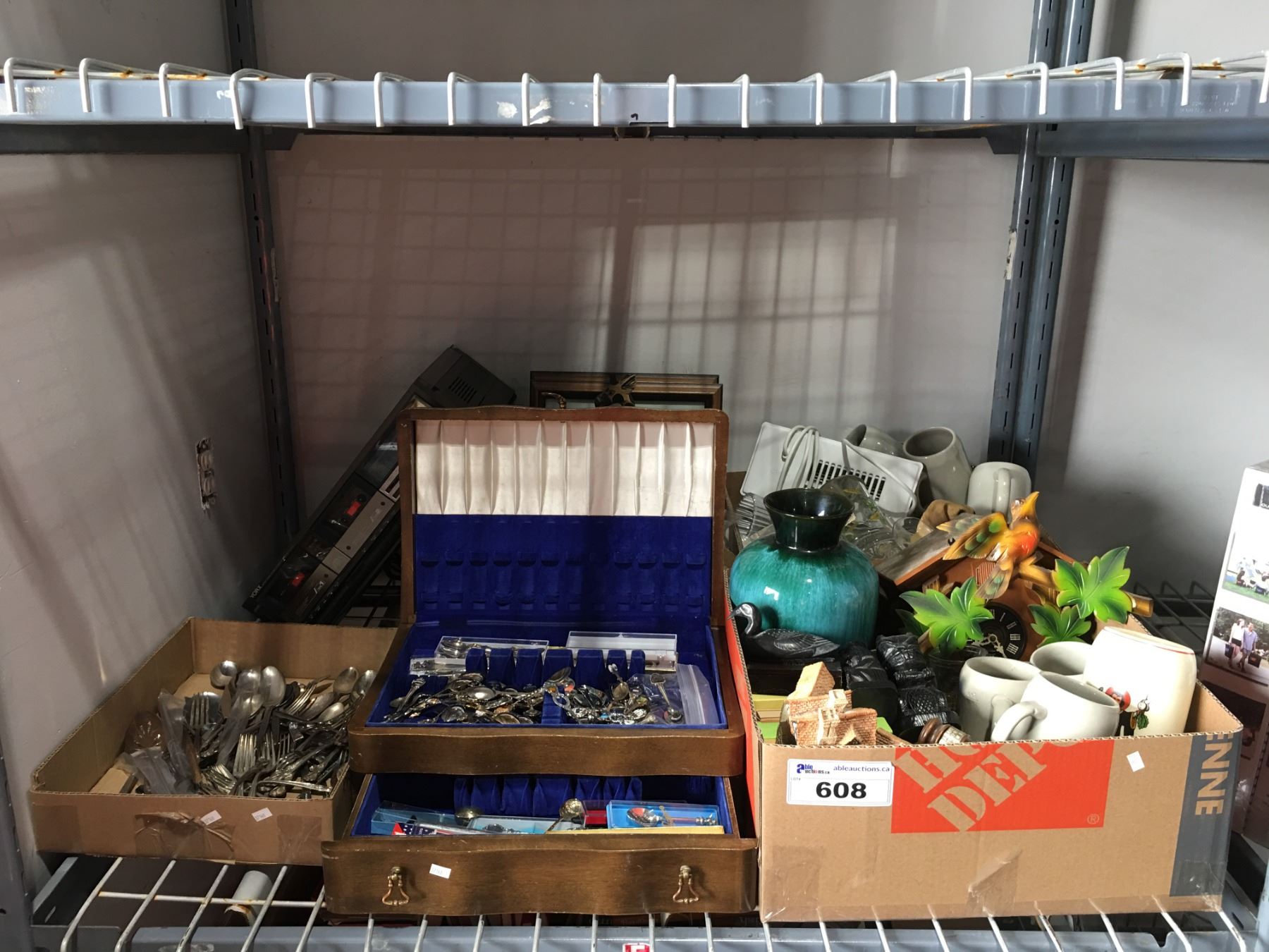 SHELF LOT OF ASSTD DECORATIVE ITEMS - COLLECTOR SPOONS, NICK-KNACKS & MISC.