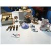 SHELF LOT OF ASSTD ITEMS INCLUDES: GERMAN MILK PITCHER, SET OF CHEESE PLATES WITH SPREAD KNIVES ETC E