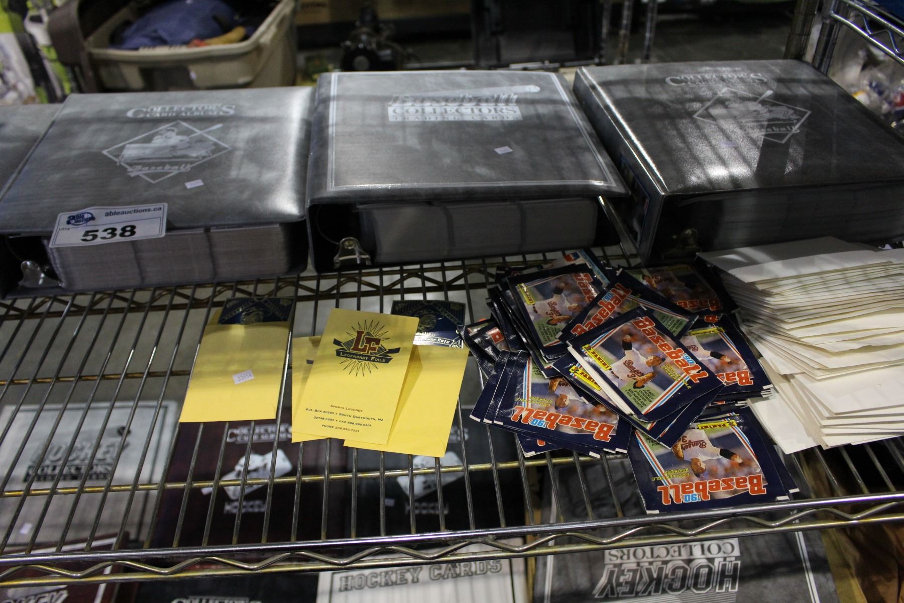 SHELF LOT OF BASEBALL CARDS AND COLLECTABLES