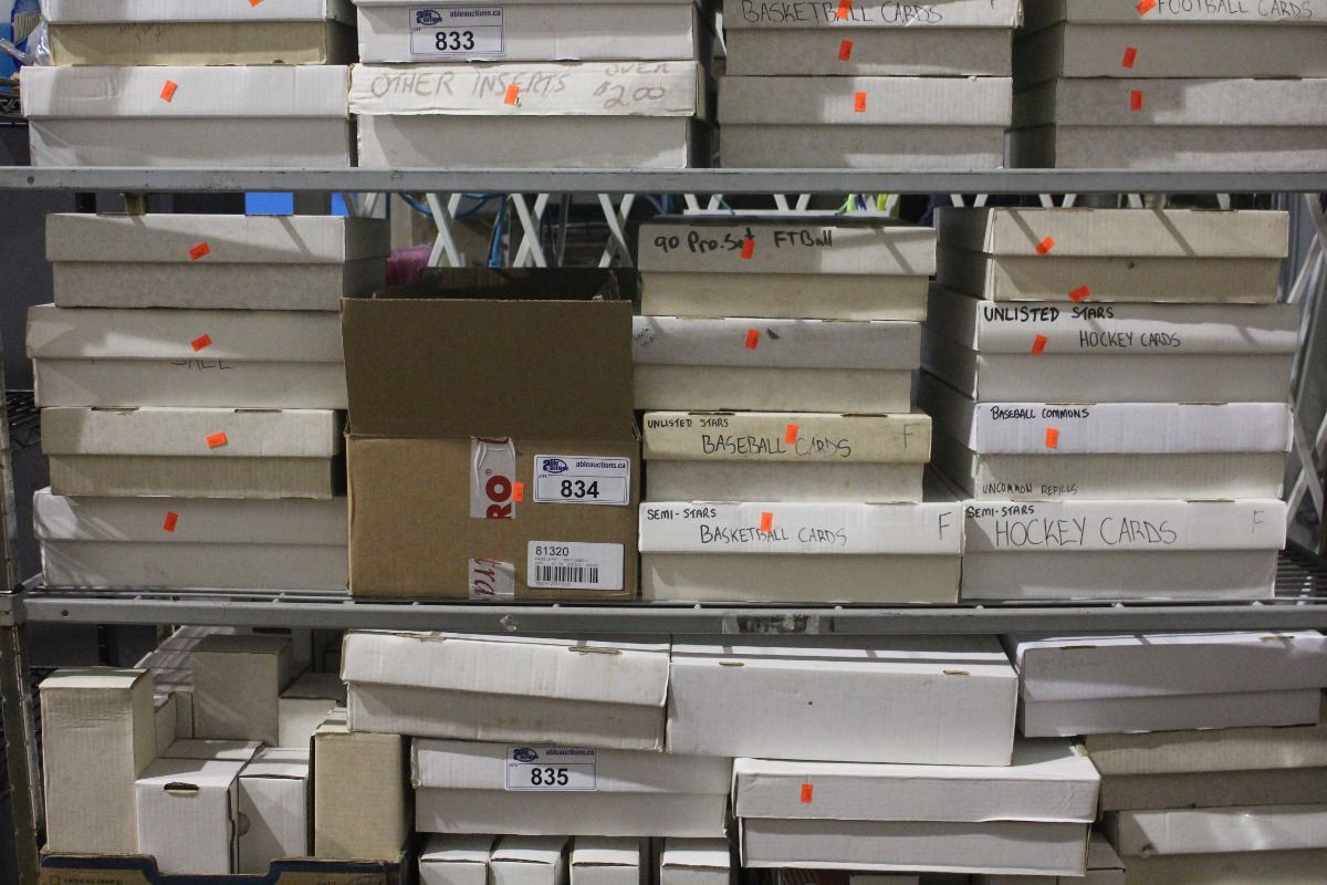 SHELF LOT OF BASEBALL, FOOTBALL AND BASKETBALL CARDS