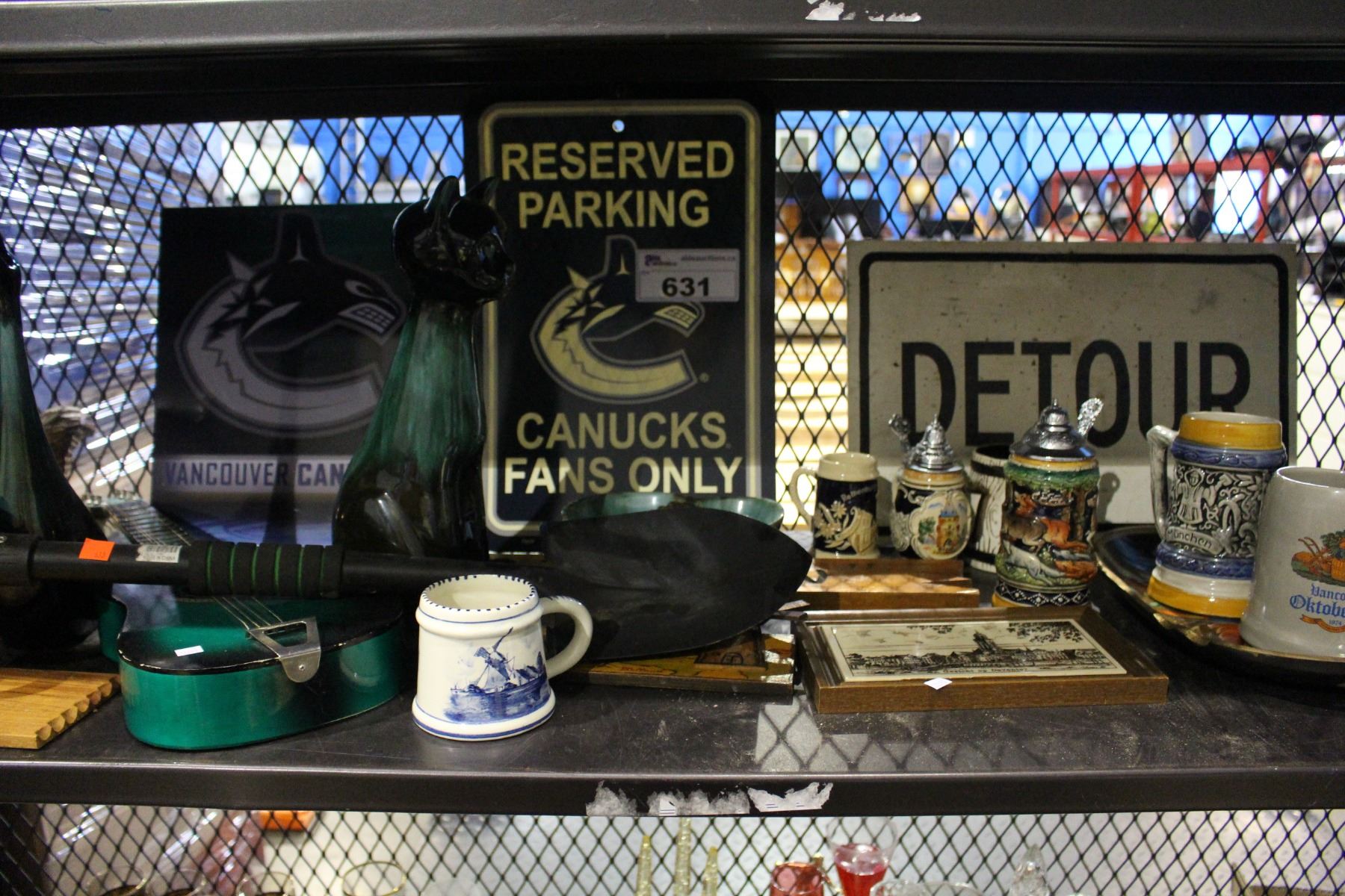 SHELF LOT OF BEERSTEINS, COLLECTABLES, ART AND MORE