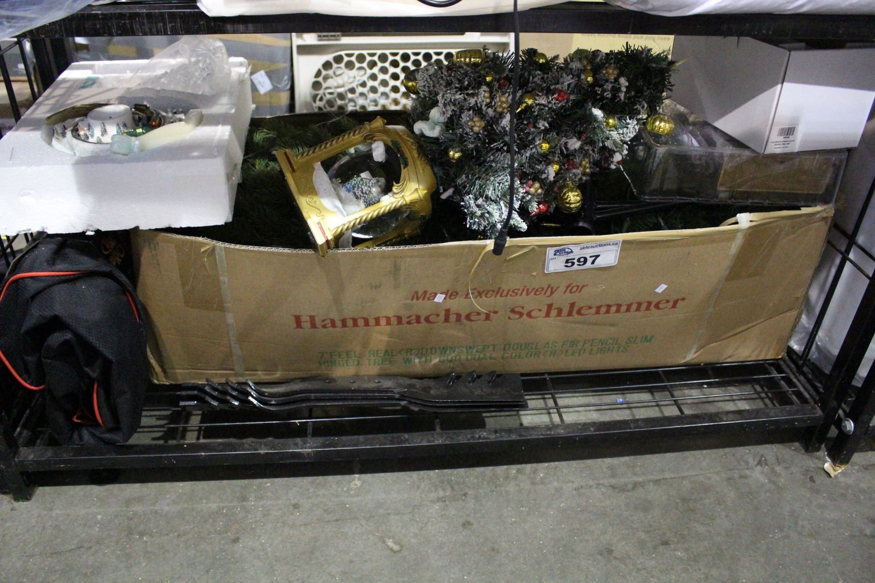 SHELF LOT OF CHRISTMAS DECORATIONS AND MORE