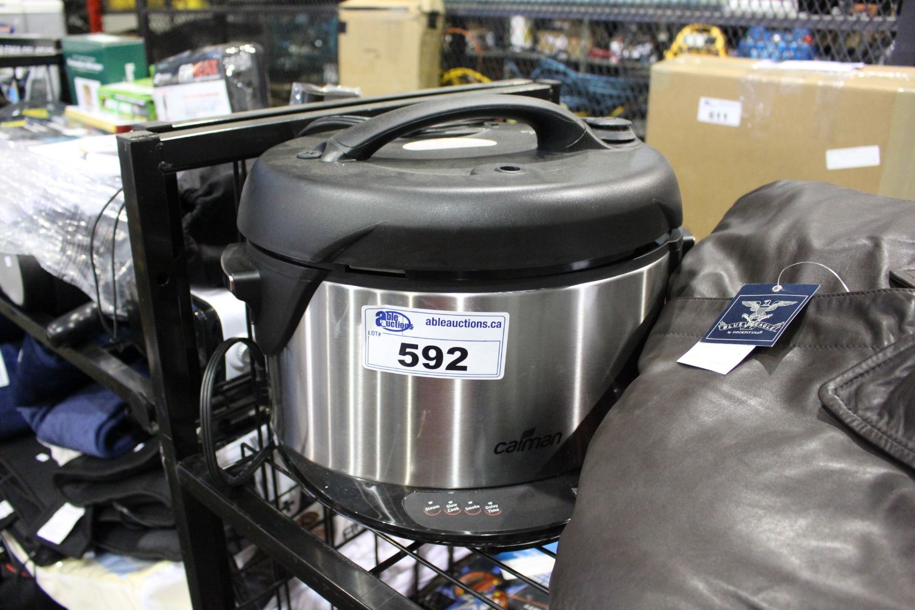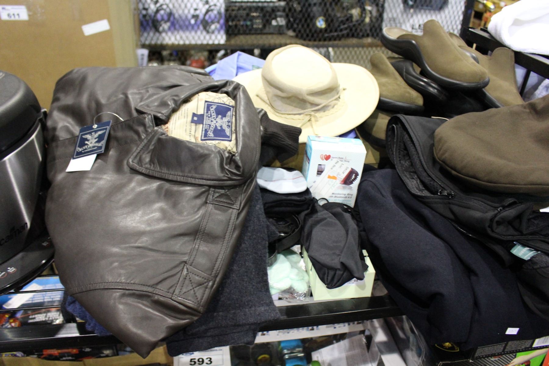 SHELF LOT OF COAT, SLOW COOKER AND MORE