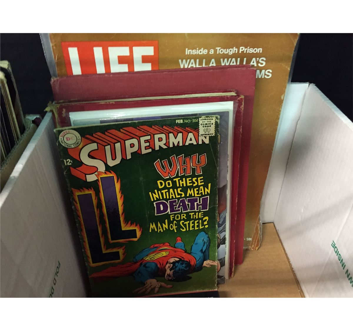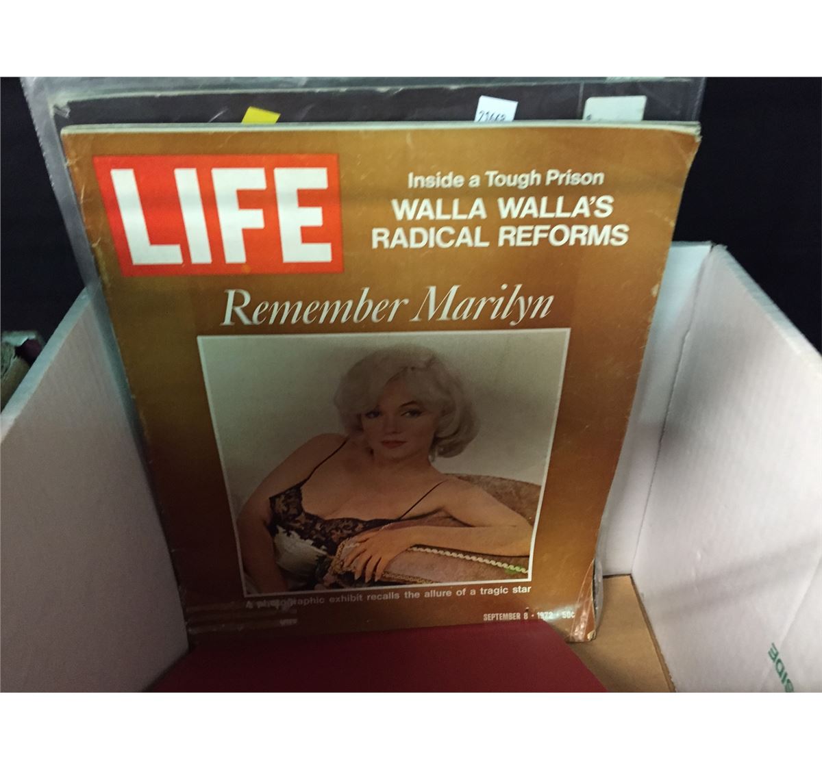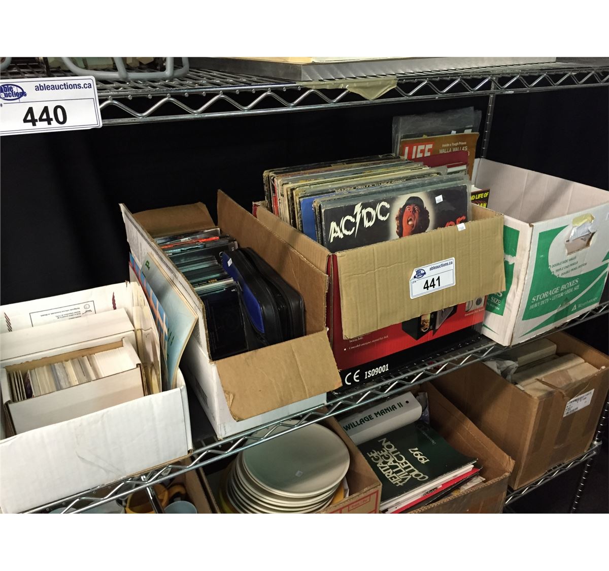 SHELF LOT OF COLLECTABLES INCL. RECORDS, CD'S, MAGAZINES, ETC