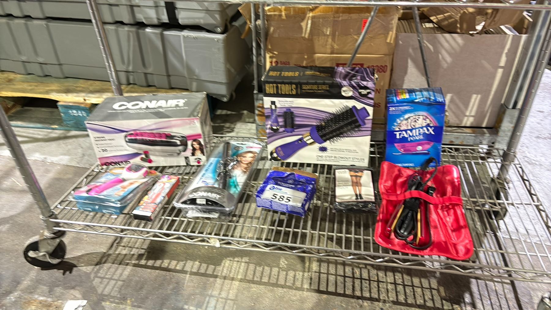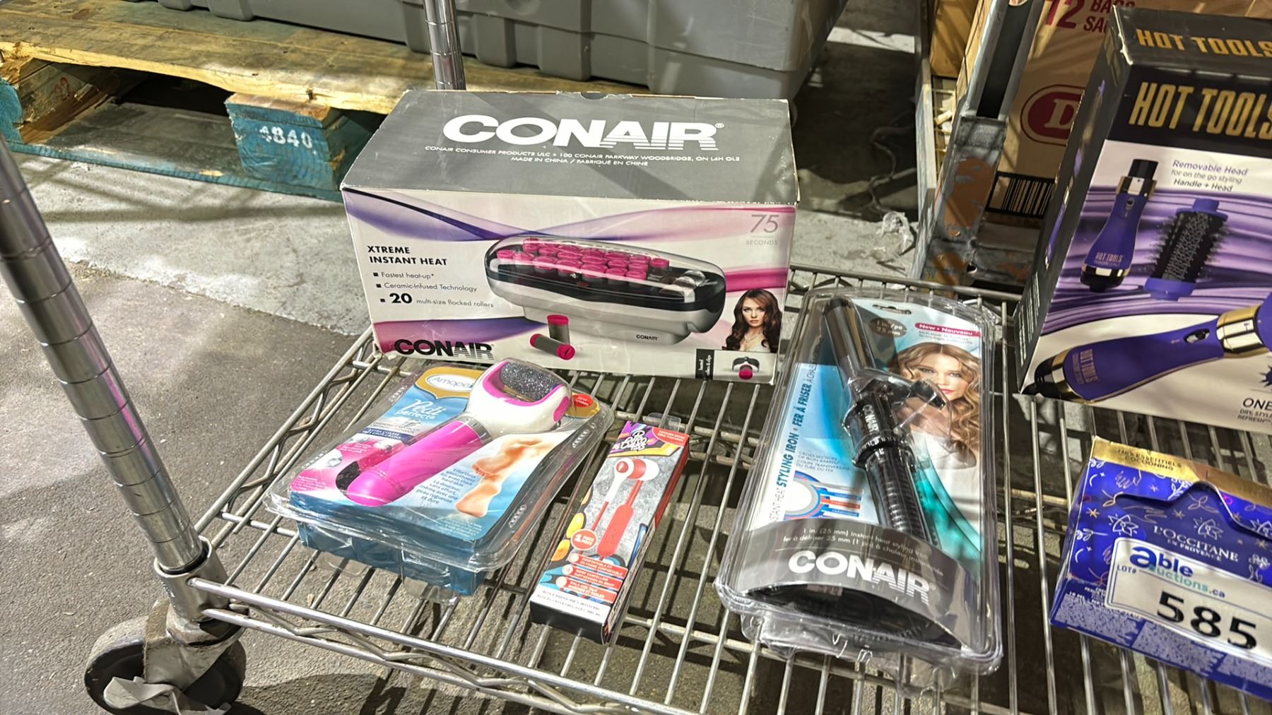SHELF LOT OF CONAIR CURLING IRON, PEDI PERFECT AND MORE
