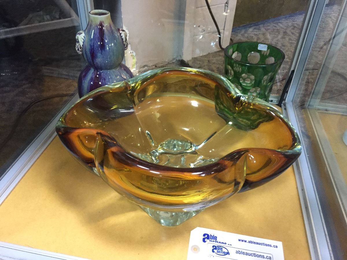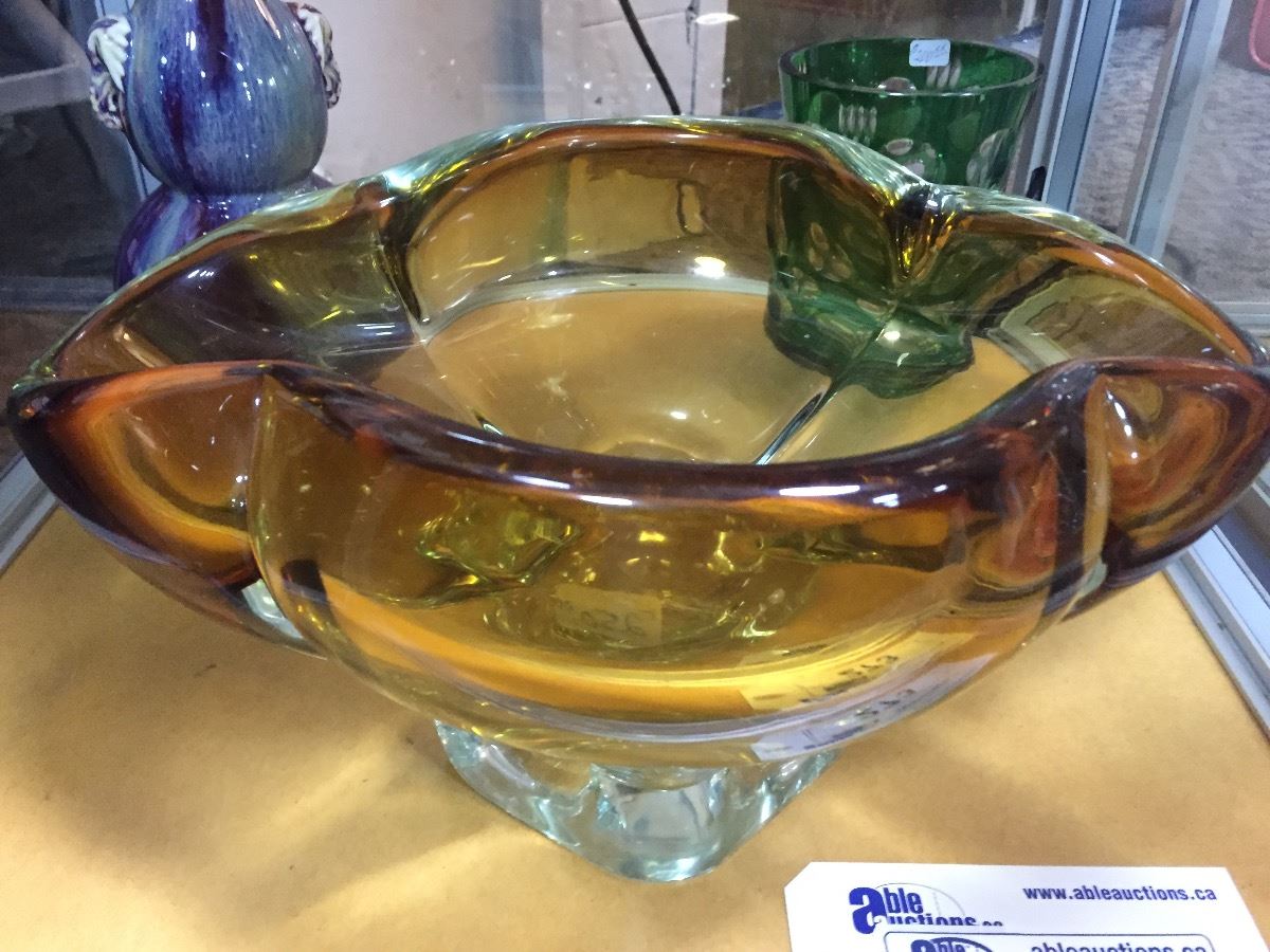 SHELF LOT OF CRYSTAL AND ART GLASS