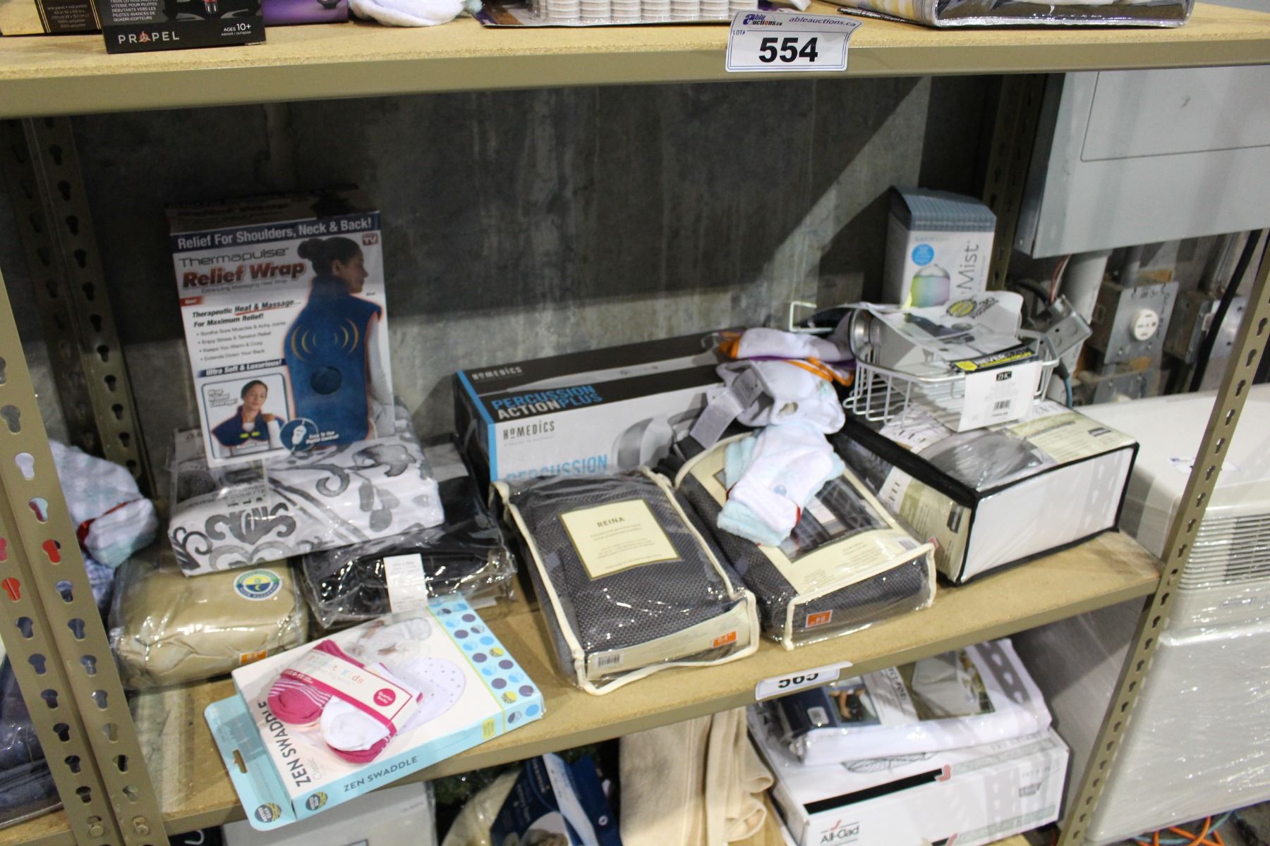 SHELF LOT OF DEPARTMENT STORE GOODS: DIFFUSER, SHOWER ORGANIZER, CURTAINS AND MORE