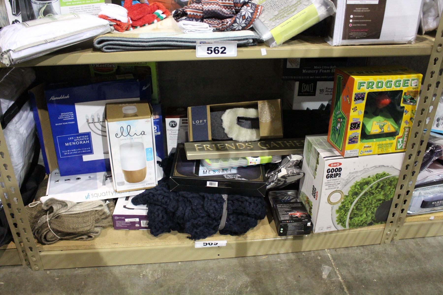 SHELF LOT OF DEPARTMENT STORE GOODS: DIFFUSER, SQUATTY POTTY, SLIPPERS AND MORE