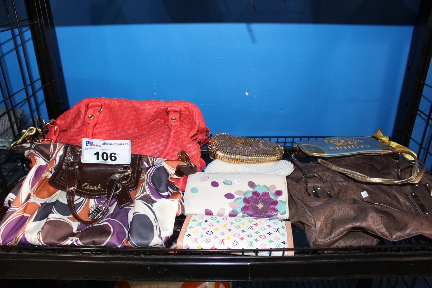 SHELF LOT OF DESIGNER HANDBAGS AND WALLETS