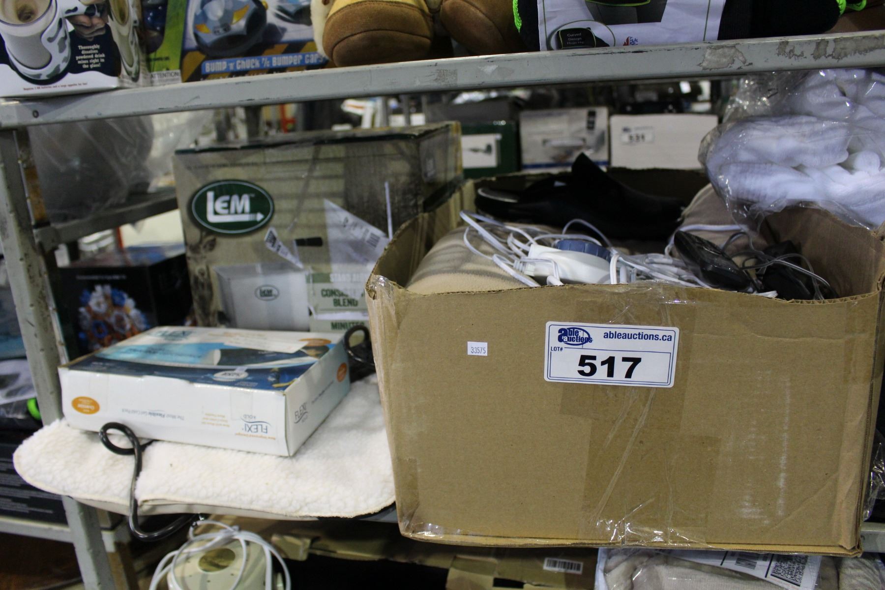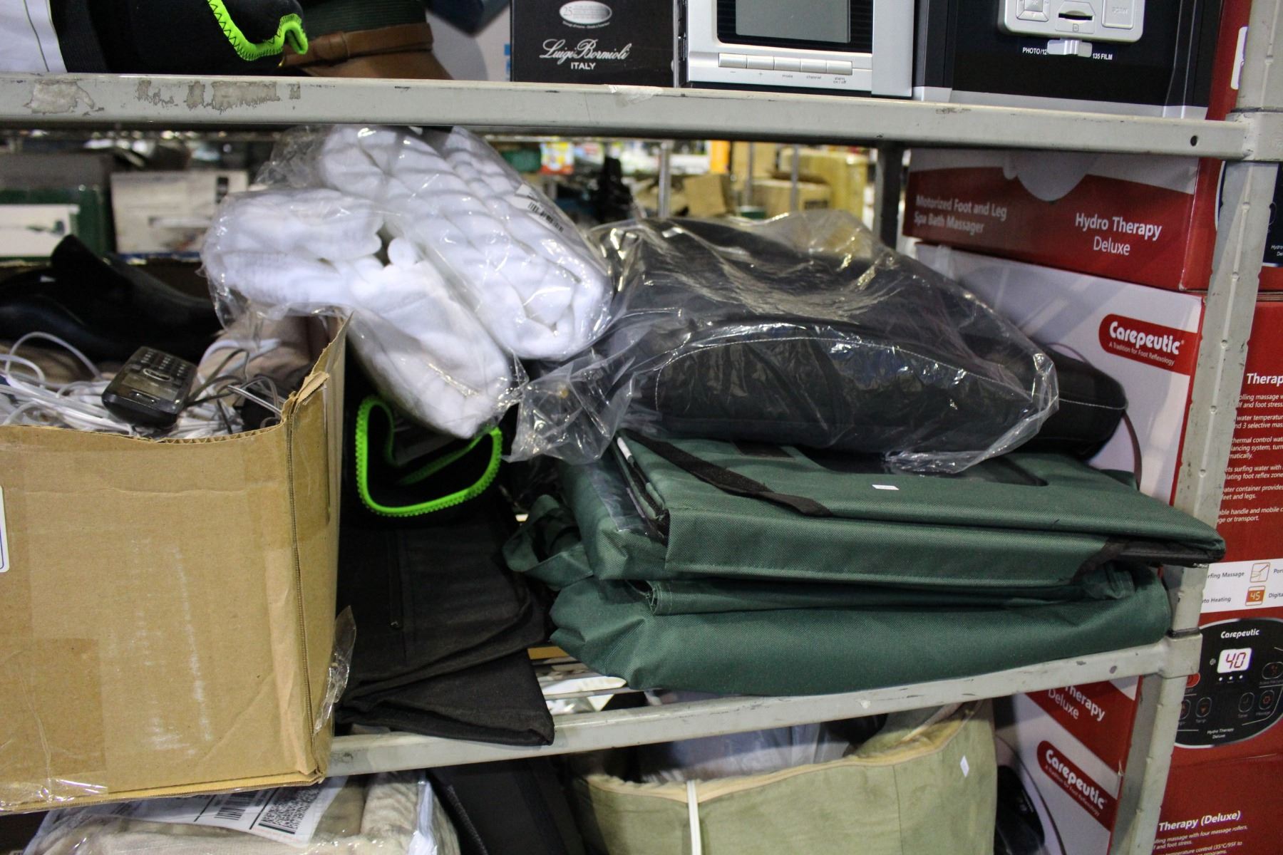 SHELF LOT OF ELECTRIC BLANKET, STAND ALONE MIXER, COLD PACK AND MORE
