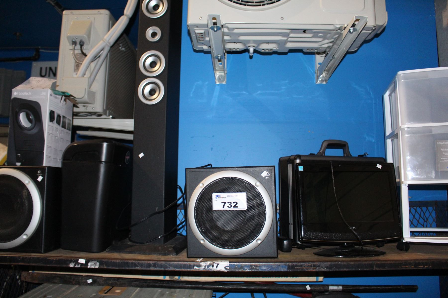 SHELF LOT OF ELECTRONICS AND STEREO EQUIPMENT