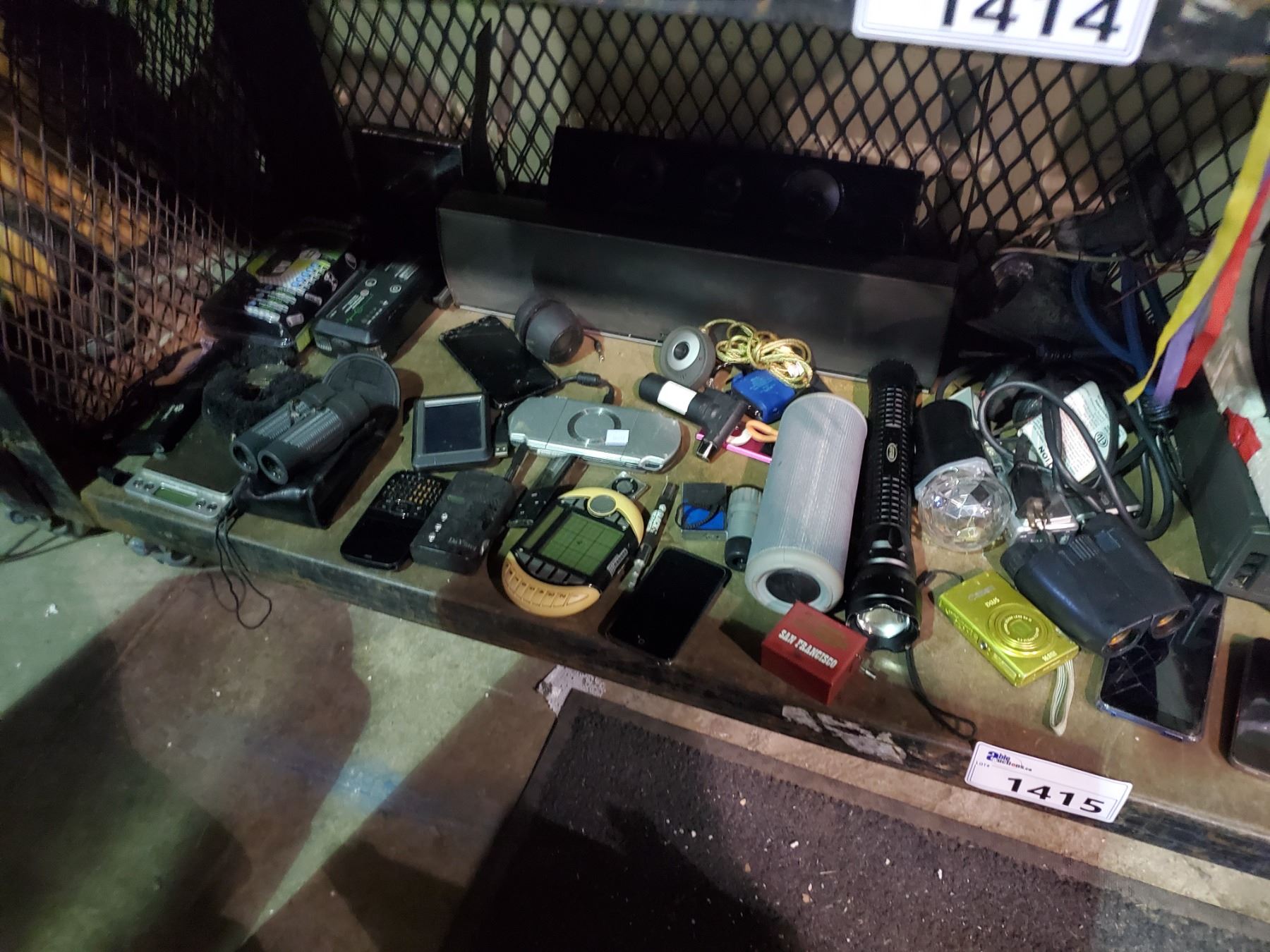 SHELF LOT OF ELECTRONICS (PSP, SMART PHONES, SUBWOOFER & MORE)