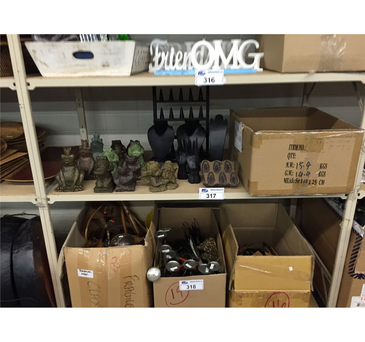 SHELF LOT OF FIGURINES, JEWELLERY, DISPLAY STAND, ANTIQUE BATIK PRINTING BLOCKS