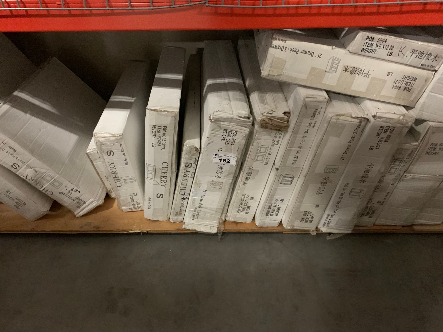 SHELF LOT OF "FLAT POND OAK" AND ASSORTED KITCHEN CABINETS