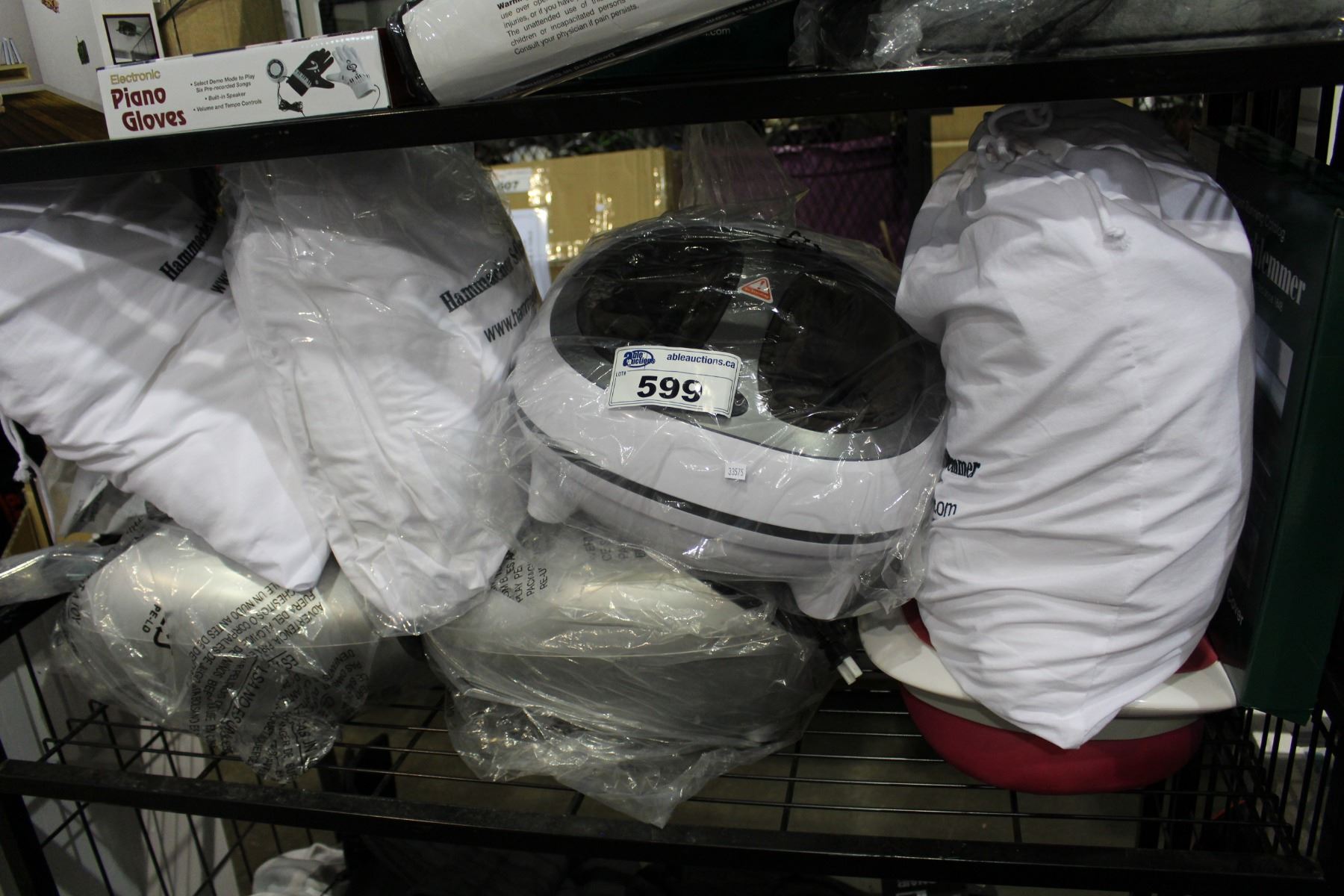 SHELF LOT OF FOOT MASSAGERS, BATHROBES AND MORE