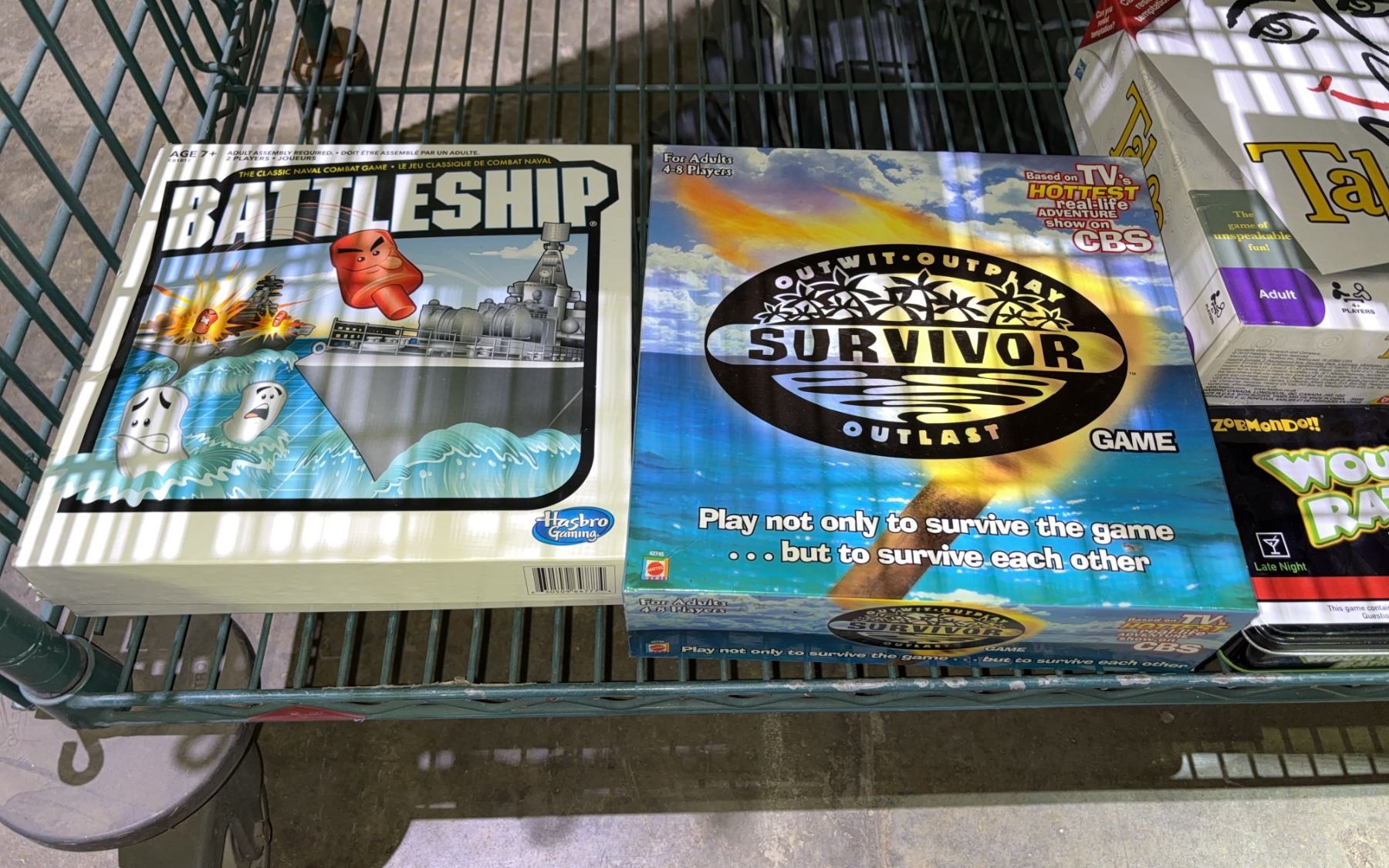 SHELF LOT OF GAMES INCLUDING; TABOO, SURVIVOR, BATTLE SHIP AND MORE