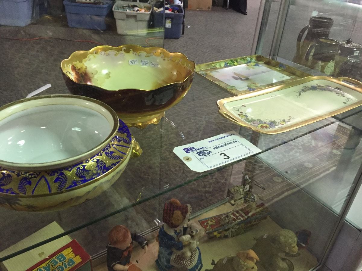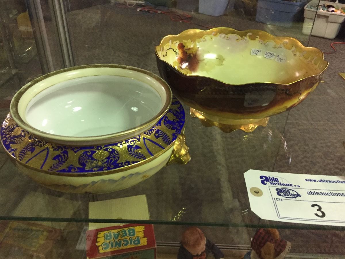 SHELF LOT OF HANDPAINTED PORECLAIN INCLUDING LIMOGES