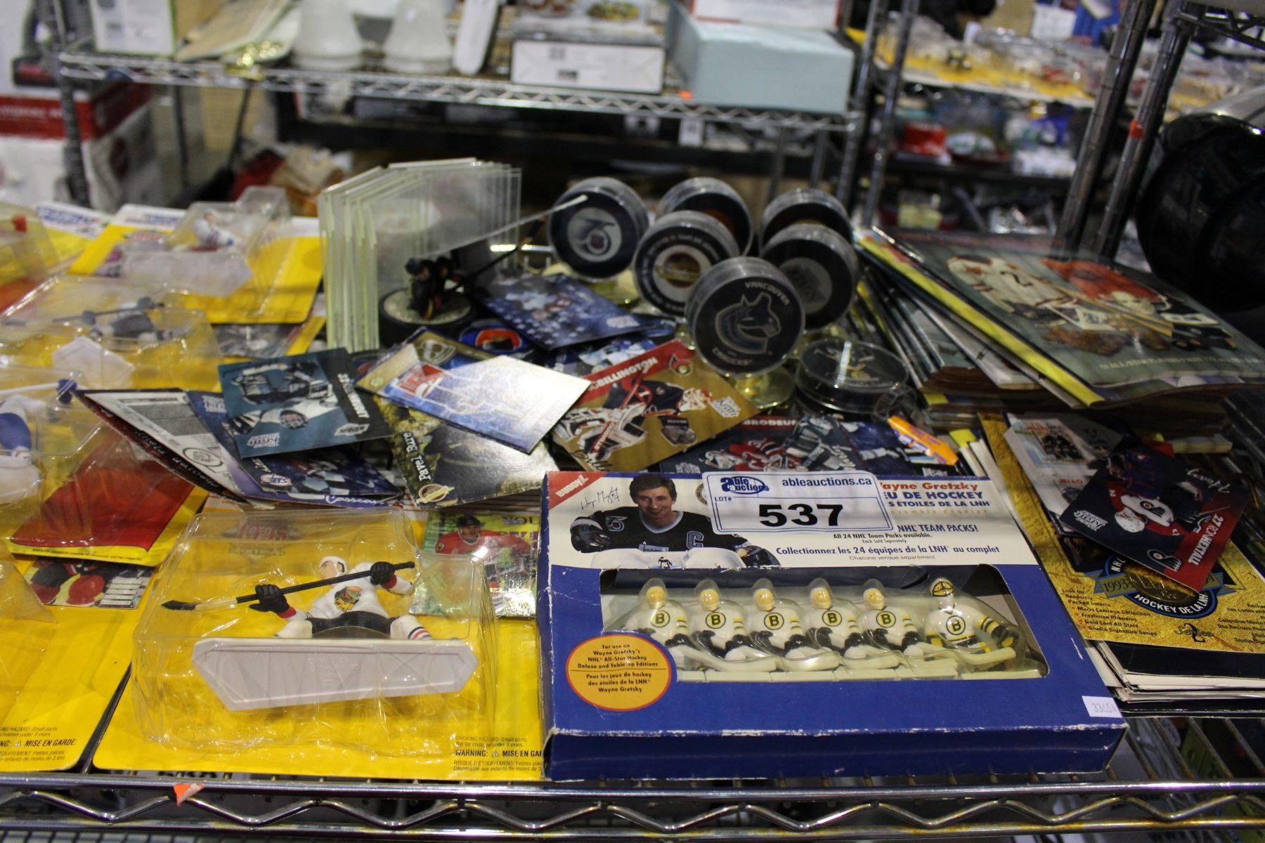 SHELF LOT OF HOCKEY CARDS AND COLLECTABLES