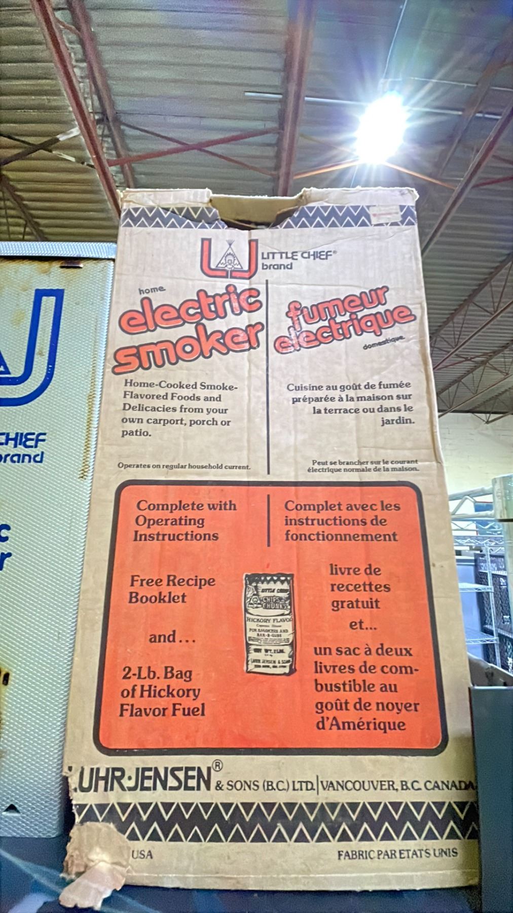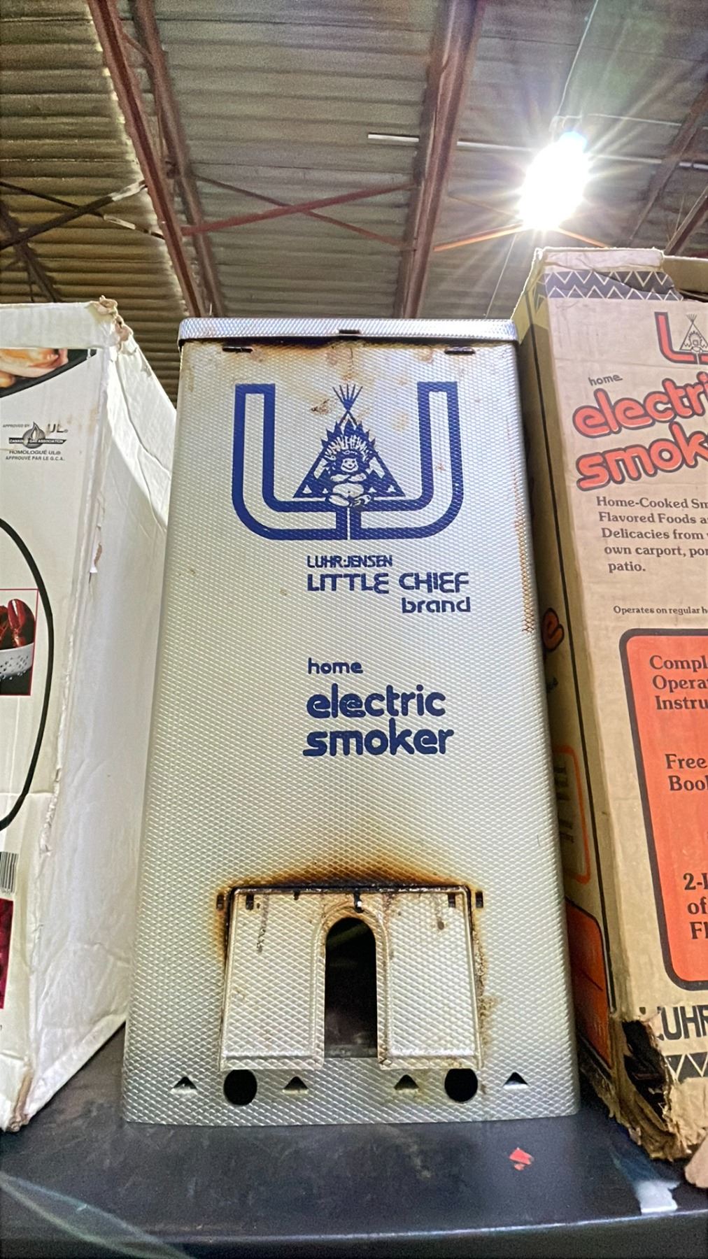 SHELF LOT OF HOME ELECTRIC SMOKER, AND OUTDOOR JUMBO COOKER