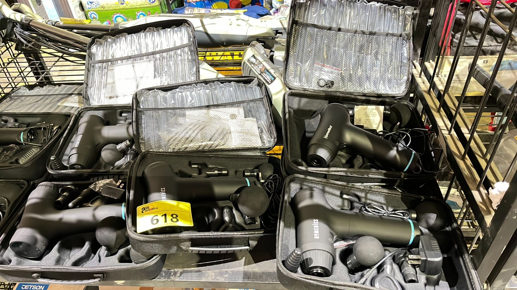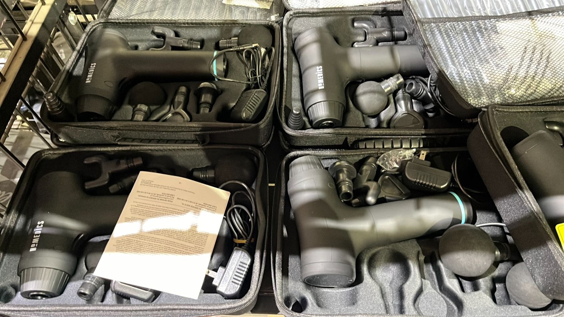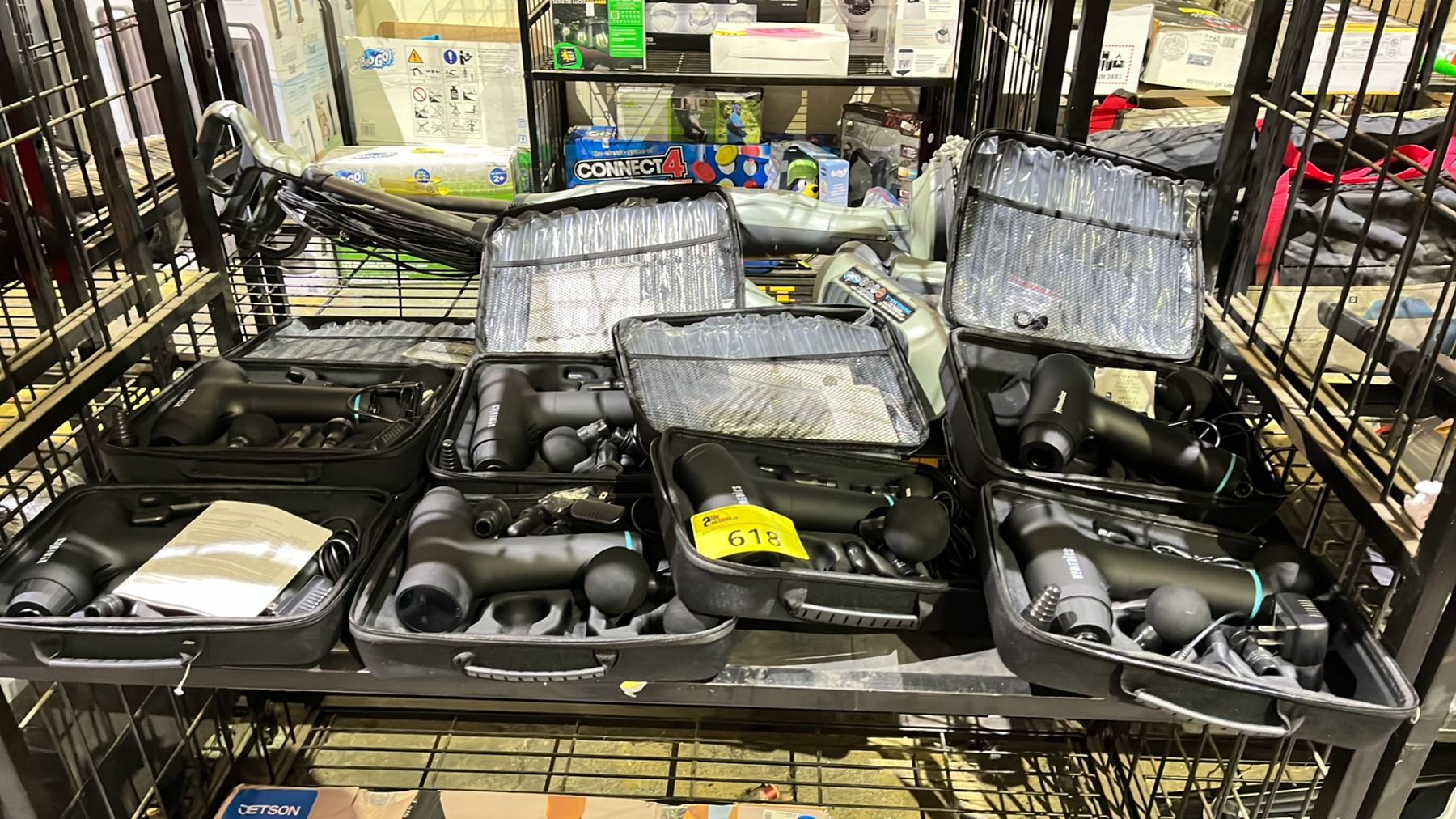 SHELF LOT OF HOMEDICS PERCUSSION MASSAGERS *UNKNOWN WORKING CONDITION/ MAY BE MISSING PIECES*